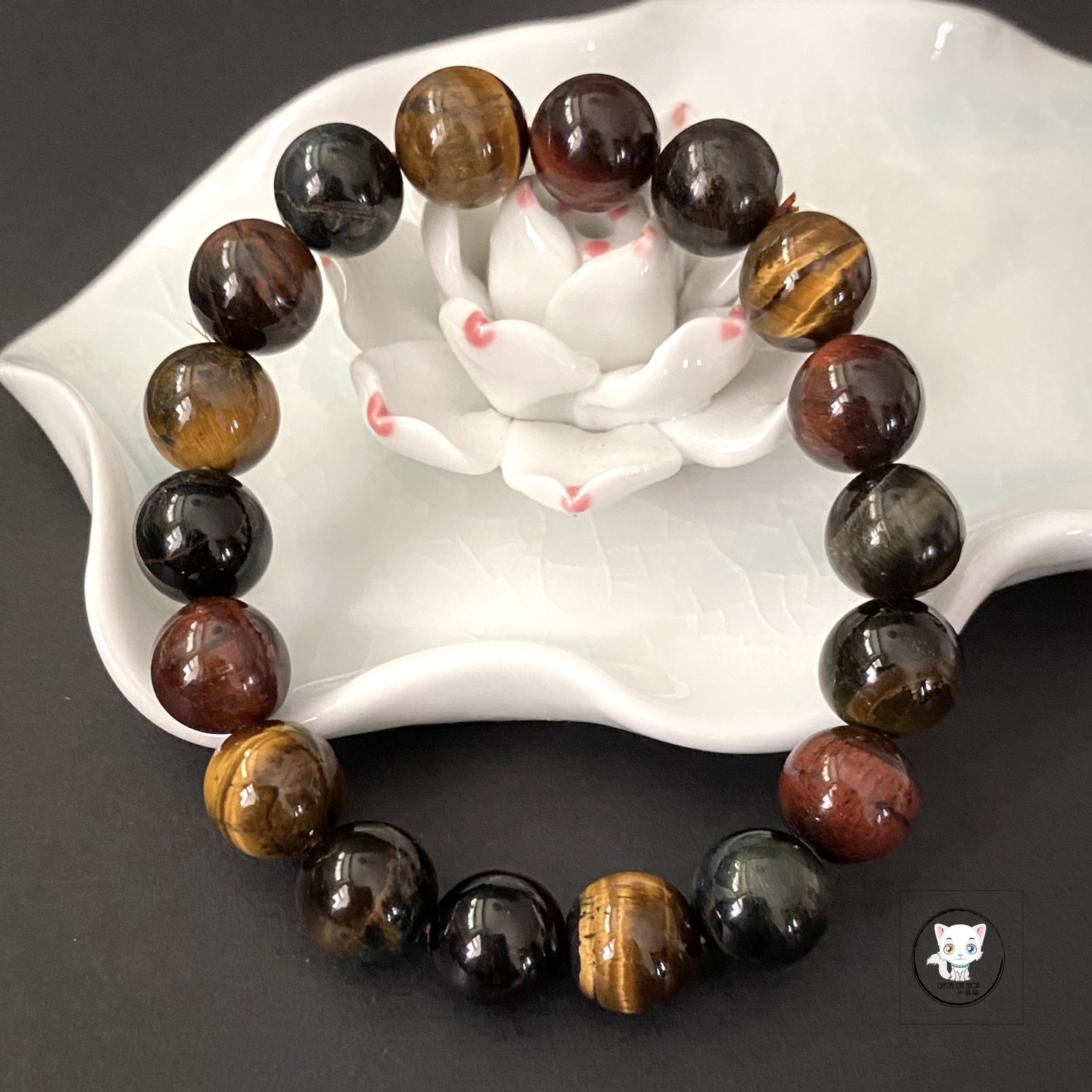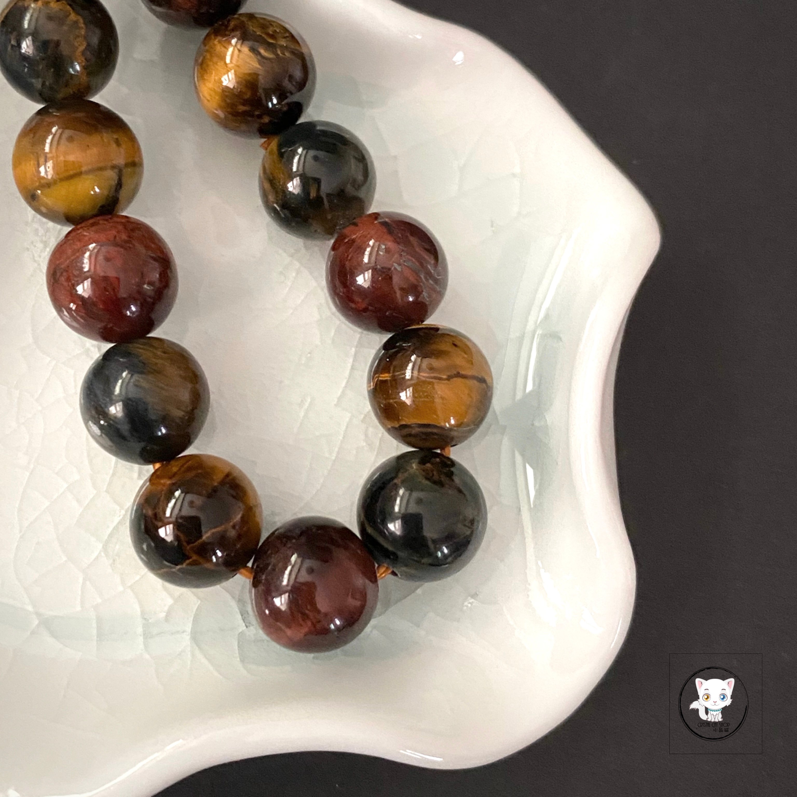 天然彩虎眼石手鏈 晶石尺寸:約10mm 適合手圍:約16cm 【彩虎眼石介紹】 💖 虎眼石 (Tiger Eye),又稱虎睛石、貓眼石或木變石,是一種珍貴的寶石,屬於石英家族。它的外觀獨特,通常呈現棕色、褐色、黃色或藍色,最常見的是黃棕色,帶有絲質光紋,像貓眼卻更顯威猛,猶如森林之王的眼睛,因此得名虎眼石。由於其紋理和顏色類似木紋,亦被稱為木變石。 ✅ 虎眼石主要功效: 1️⃣ 黃虎眼石能招來意外之財,與太陽輪和臍輪相關。它有助於改善呼吸道問題,如感冒和哮喘,並促進骨骼和關節健康,穩定神經系統,調節因飲食不當引起的不適。 2️⃣ 紅虎眼石在印度被視為尊貴聖石,通常呈紅褐色,特別適合年輕女性。它能改善呼吸系統問題,增強關節靈活性,並有助於提升自信,改善優柔寡斷的心理特徵,增強運勢。 3️⃣ 藍虎眼石被稱為「鷹眼石」,被認為能加速願望的實現。它有助促進新陳代謝、補充骨髓、排毒和清潔身體。佩戴藍虎眼石有助於培養勇氣、自信、信心和積極進取的態度。 💟 請瀏覽我們的網站,了解更多虎眼石的資訊,並選擇您喜愛的產品❣️ 🔮 功效非精密科學,僅供參考。 ❇️ 質素如一,隨機發貨 ❇️ 📍天然水晶均有天然紋路,冰裂,棉絮或少許礦缺,如介意者,請注意。 ⚠️ 敬請留意 : 照片因拍攝光線或電腦螢幕設定不同,晶石顏色與實物可能會有輕微色差,顏色以實物為準。