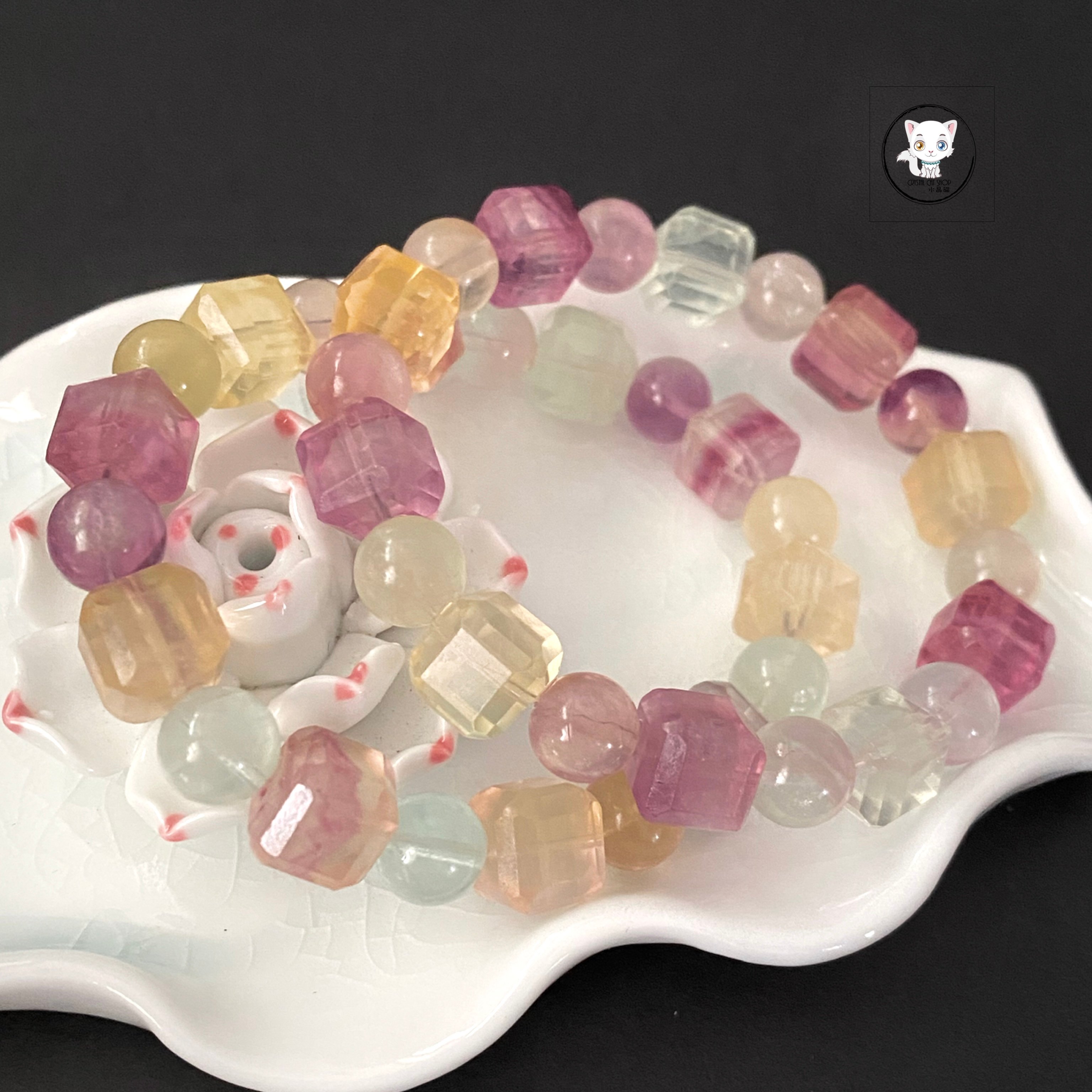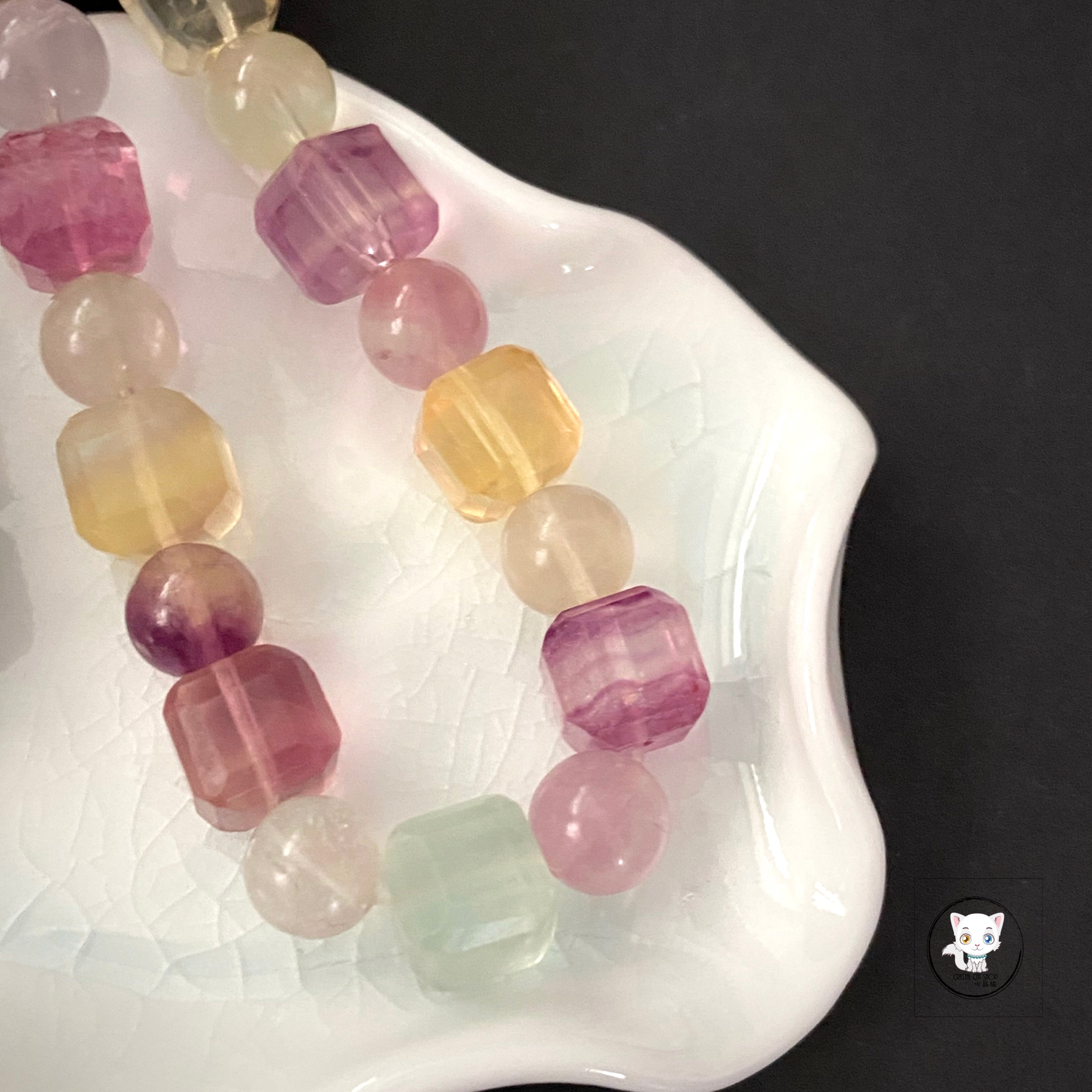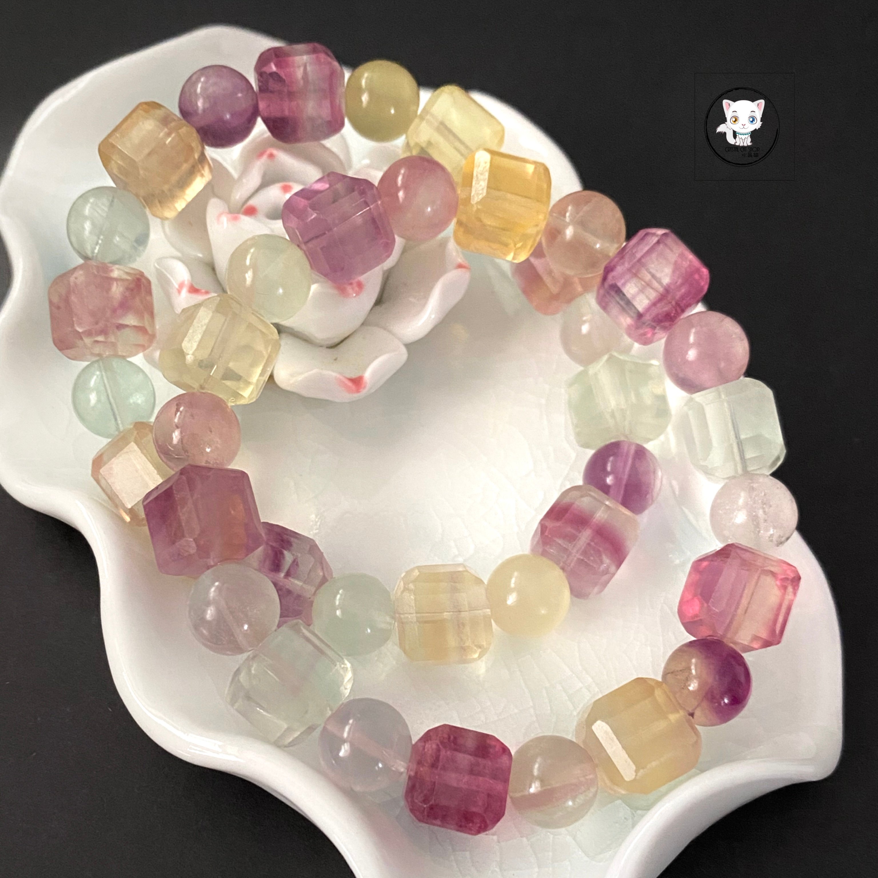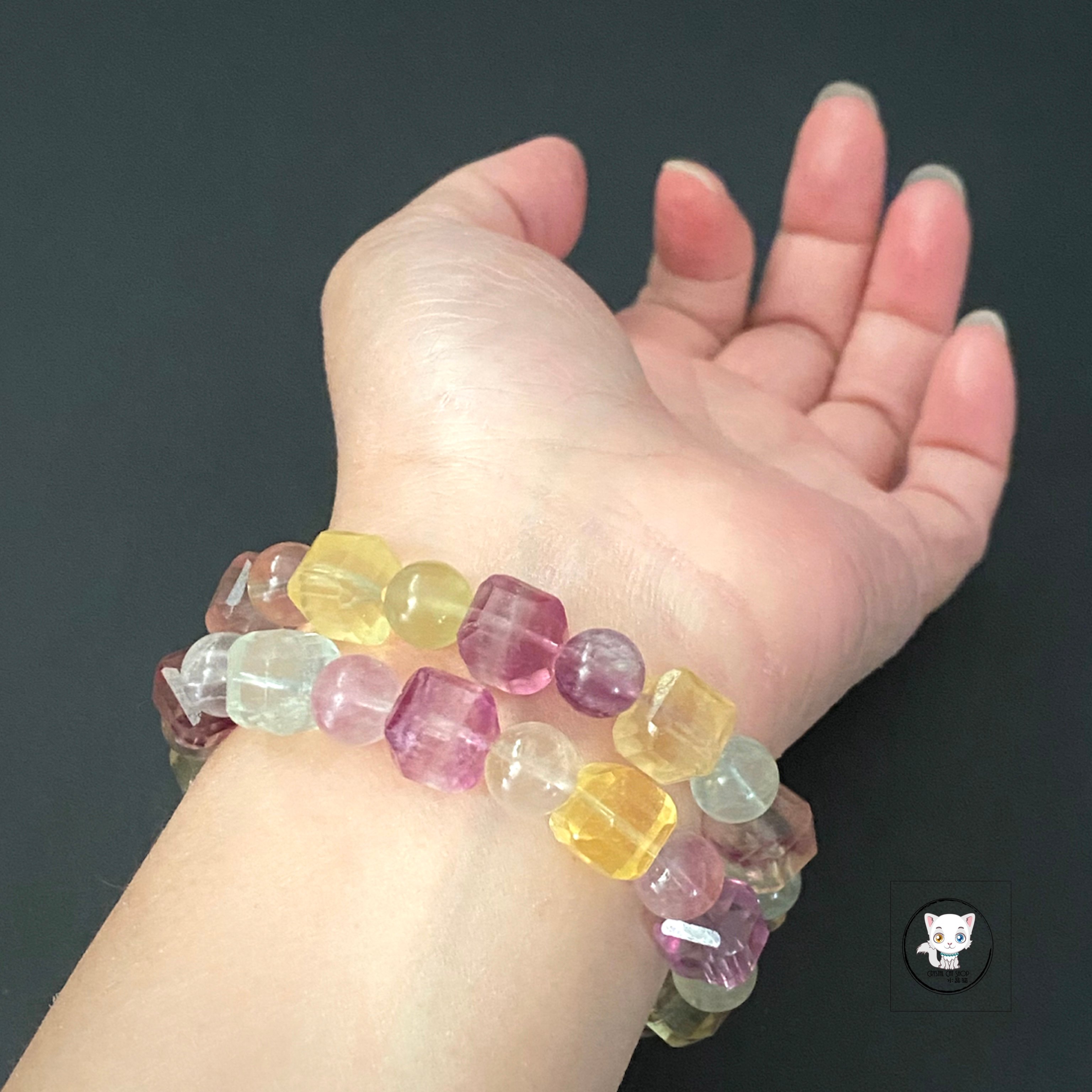 天然彩螢石方糖手鏈 晶石尺寸:約10mm 適合手圍:約16.5cm 【彩螢石介紹】 💖 螢石(Fluorite)是一種神奇的寶石,主要呈現綠色、藍色和紫色。它的緻密塊狀和無色狀使得它的玻璃光澤和螢光效果更加顯著,而且在夜晚時更能呈現迷人的夜光效應。 ✅ 功效: 彩螢石能提升智慧、創造力和直覺,並增強靈性。它加強人際關係,幫助消磁淨化氣場和平衡脈輪,能有效釐清思緒,提振精神,平復情緒。此外,彩螢石也能穩定精神,協調靈性,並增加身體的靈活性和警覺性。 💟 使用螢石的方法非常簡單,您可以握住它冥想,放在身體不同的部位,如眉心、臍輪或太陽神經叢旁邊。螢石的神奇功效可以幫助您提升生活品質,讓您更加平衡、自信和積極。 🔮 功效非精密科學,僅供參考。 ❇️ 質素如一,隨機發貨 ❇️ 📍天然水晶均有天然紋路,冰裂,棉絮或少許礦缺,如介意者,請注意。 ⚠️ 敬請留意 : 照片因拍攝光線或電腦螢幕設定不同,晶石顏色與實物可能會有輕微色差,顏色以實物為準。