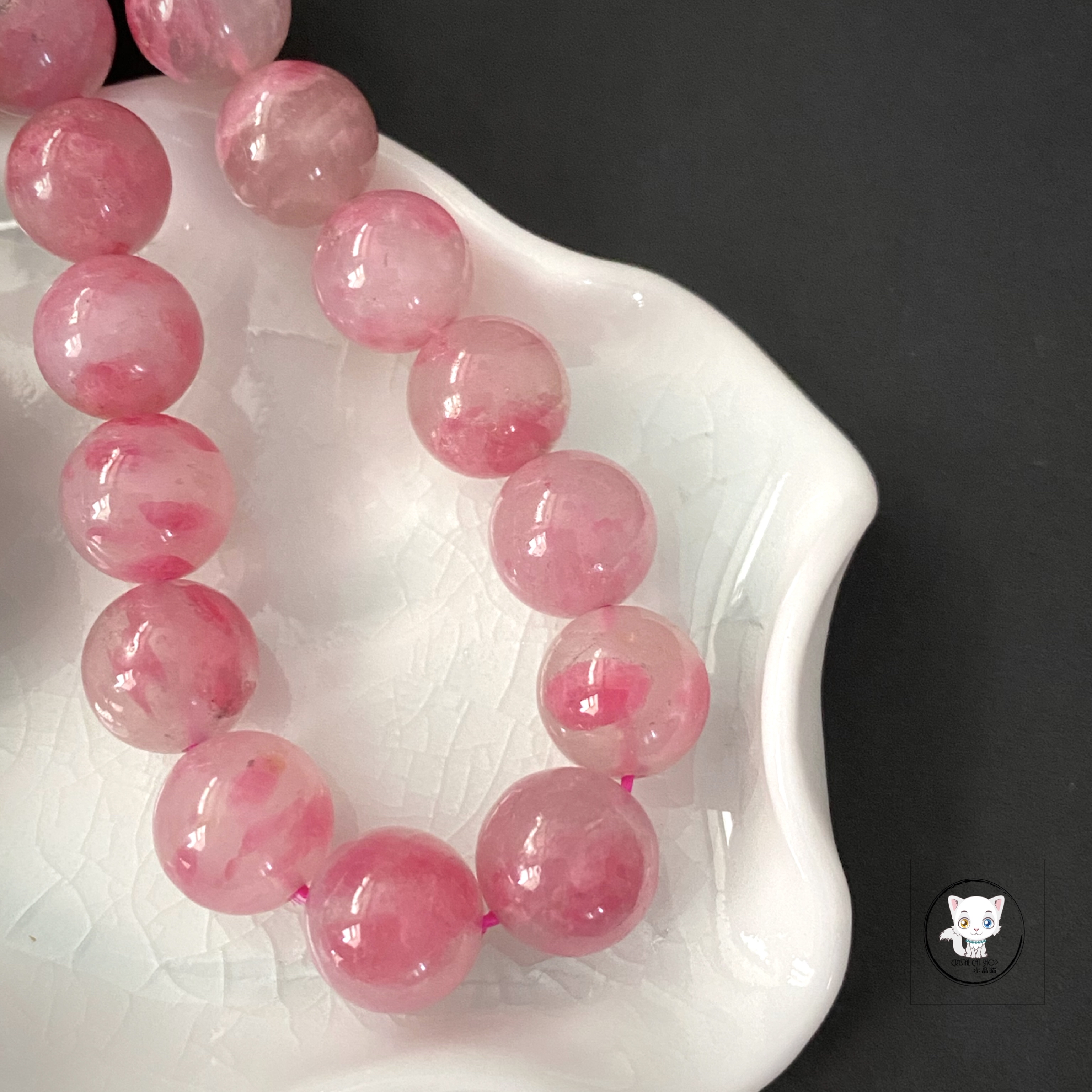 天然櫻花雨薔薇輝石手鏈 晶石尺寸:約12mm 適合手圍:約17cm 【薔薇輝石介紹】 💖 薔薇輝石(Rhodonite)是一種極為美麗的寶石,具有獨特的外觀和豐富的色彩。雖然硬度為5.5-6.5,但仍能呈現良好拋光,並擁有多種功效。 💟 我們的南非櫻花雨手串更是難得一見,幾乎不帶黑色,底部透明,飄著紅花瓣,展現出極其美麗的效果。這款手串不僅增添魅力,還能幫助保持冷靜,增強自信,讓您的手腕更具時尚感。 ✅ 薔薇輝石有助於培養高貴情操,擴闊心胸,建立自我價值觀,保持冷靜,清晰思考。其紅潤顏色還能轉運,為您帶來好運。 💜 此外,薔薇輝石還能調和親人關係,增進愛情和友情,成為您人際關係和愛情運的助力。 🔮 功效非精密科學,僅供參考。 ❇️ 質素如一,隨機發貨 ❇️ 📍天然水晶均有天然紋路,冰裂,棉絮或少許礦缺,如介意者,請注意。 ⚠️ 敬請留意 : 照片因拍攝光線或電腦螢幕設定不同,晶石顏色與實物可能會有輕微色差,顏色以實物為準。