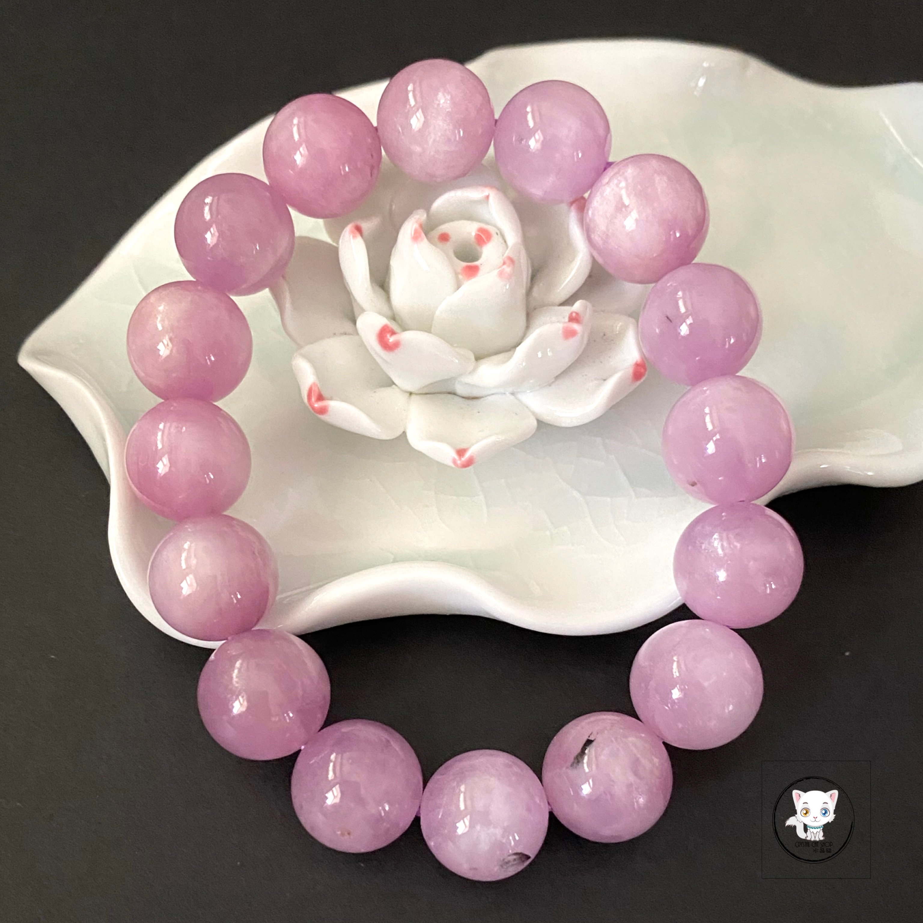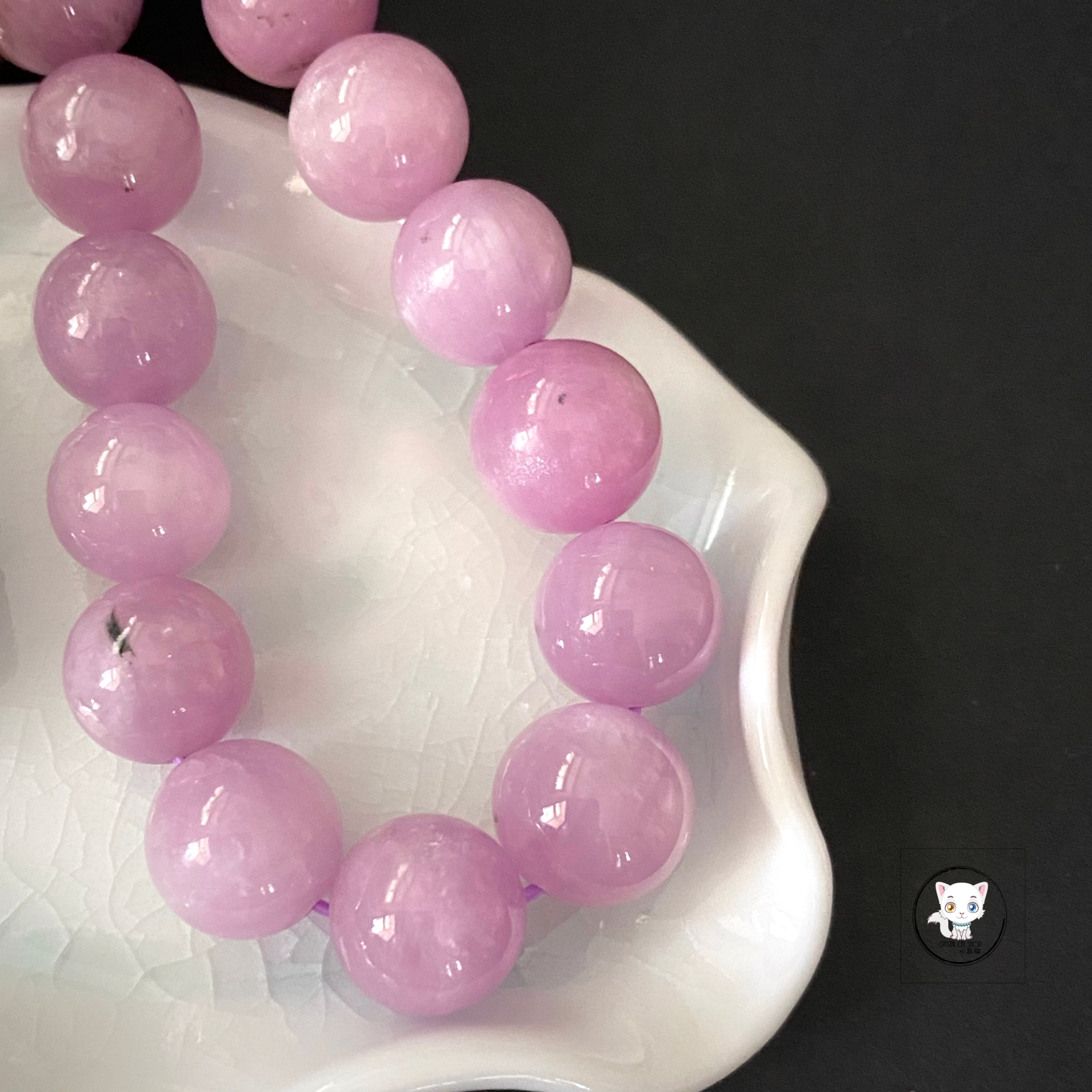 天然紫鋰輝石手鏈(微黑點) 晶石尺寸:約12mm & 13mm 適合手圍:約18cm 【紫鋰輝石介紹】 💟 讓您愛上鋰輝石 - 美麗的寶石,夢幻般雅致的光輝,溫柔如輕紗的質地,把寶石中女性的溫柔之美體現的淋漓盡致❣️ 💖 鋰輝石是一種含鋰元素的礦物,顏色有紫、紅、黃、綠等多種顏色。由透明無色至紫色的,稱為「紫鋰輝石Kunzite」、綠色的「綠鋰輝石Hiddenite」,而紅色、紫紅色和黃色的,則沒有特別的名稱。鋰輝石的能量,可暢通人體七輪,但又不太刺激。最適宜在靜坐時使用。 ✅ 紫鋰輝 (Kunzite) 被譽為情人之石和姻緣石,戴上她,可以長久地得到情人的寵愛和幸福美滿的婚姻。她通過舒緩緊張和消除壓力,增強靈性和第六感,使人更加開放,不會為俗事而耿耿於懷。佩戴紫鋰輝可以使人心情感到愉悅、平和,充滿上進心和積極向上的力量,更是財富的象徵。 💟 如果您想擁有一個充滿魅力和能量的紫鋰輝,請來我們的網站選購吧❣️ 🔮 功效非精密科學,僅供參考。 ❇️ 質素如一,隨機發貨 ❇️ 📍天然水晶均有天然紋路,冰裂,棉絮或少許礦缺,如介意者,請注意。 ⚠️ 敬請留意 : 照片因拍攝光線或電腦螢幕設定不同,晶石顏色與實物可能會有輕微色差,顏色以實物為準。