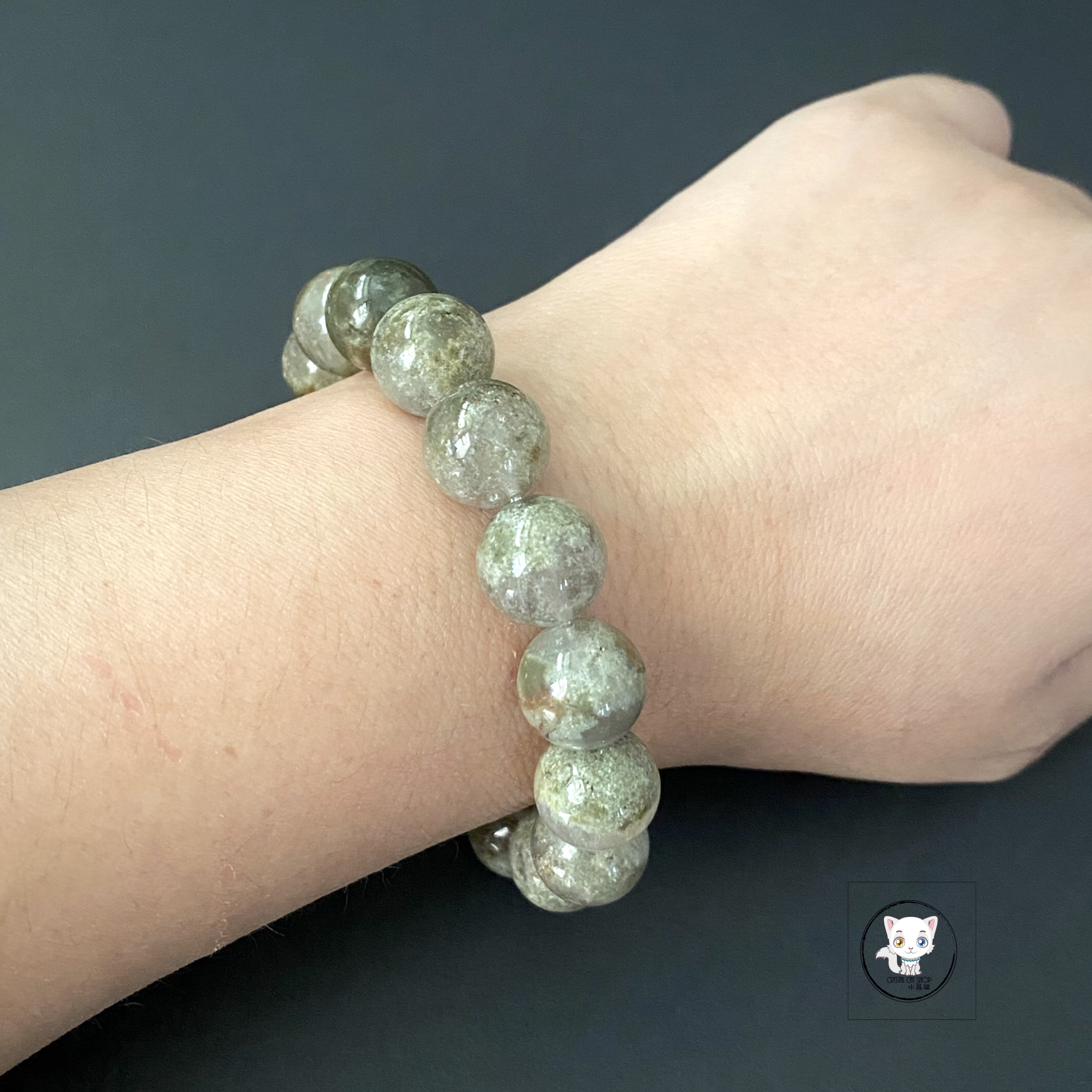 天然綠幽靈水晶手鏈 13mm