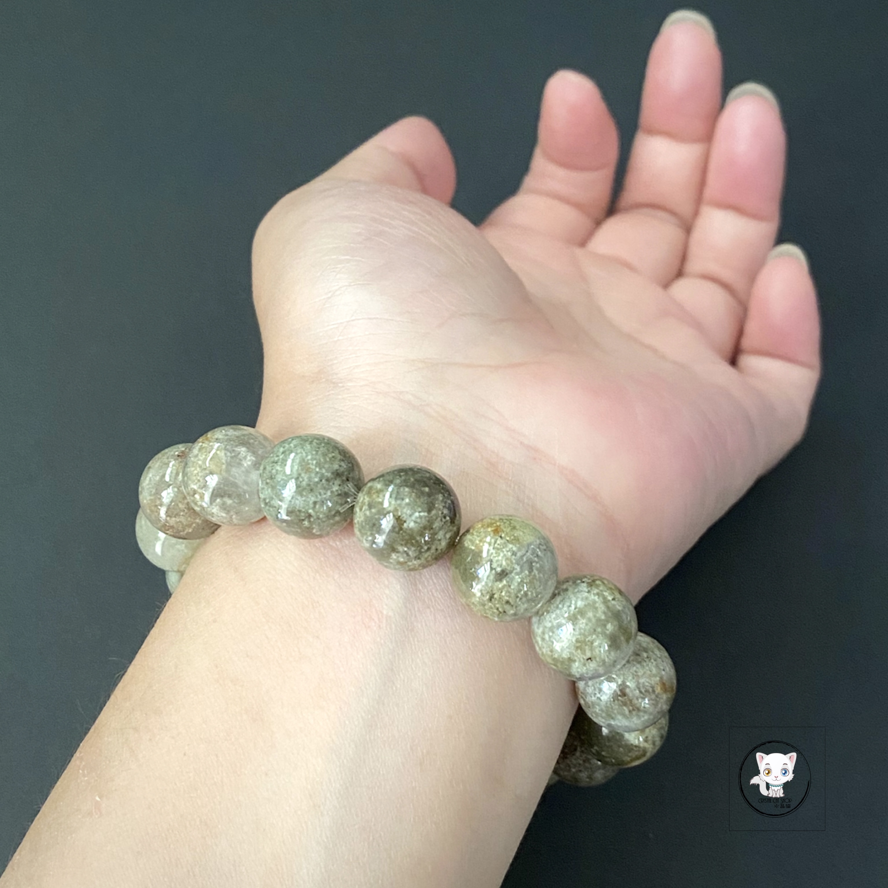 天然綠幽靈水晶手鏈 (大珠) 晶石尺寸:約13mm 適合手圍:約17cm 【綠幽靈介紹】 💖 綠幽靈(Green Phantom)是幽靈水晶中最有名的,具有多層重疊的千層綠色幻影。它包含了由火山灰形成的礦物質,內含物顏色為綠色的稱為綠幽靈。根據火山泥顏色的變化,還會形成紅幽靈、白幽靈、黃幽靈、紫幽靈和黑幽靈等,各具不同功效。 💟 綠幽靈是五月的生日石,特別旺工作和貴人,能帶來更多工作機會,但也會讓人變得更忙。因此,對於需要多勞多得的人,綠幽靈最有幫助。如果收入固定或已經很忙,佩戴紅幽靈(帶紅泥的紅綠幽靈)會更合適,有助於吸引貴人幫忙。 ✅ 綠幽靈水晶的功效包括:提升正財運,增強聚財效果,助力事業發展,吸引貴人支持;平衡情緒,強化心臟功能,促進身心健康;增強自信與領導力,讓您在工作中更踏實,隨之提升財運。 🔮 功效非精密科學,僅供參考。 📍天然水晶均有天然紋路,冰裂,棉絮或少許礦缺,如介意者,請注意。 ⚠️ 敬請留意 : 照片因拍攝光線或電腦螢幕設定不同,晶石顏色與實物可能會有輕微色差,顏色以實物為準。