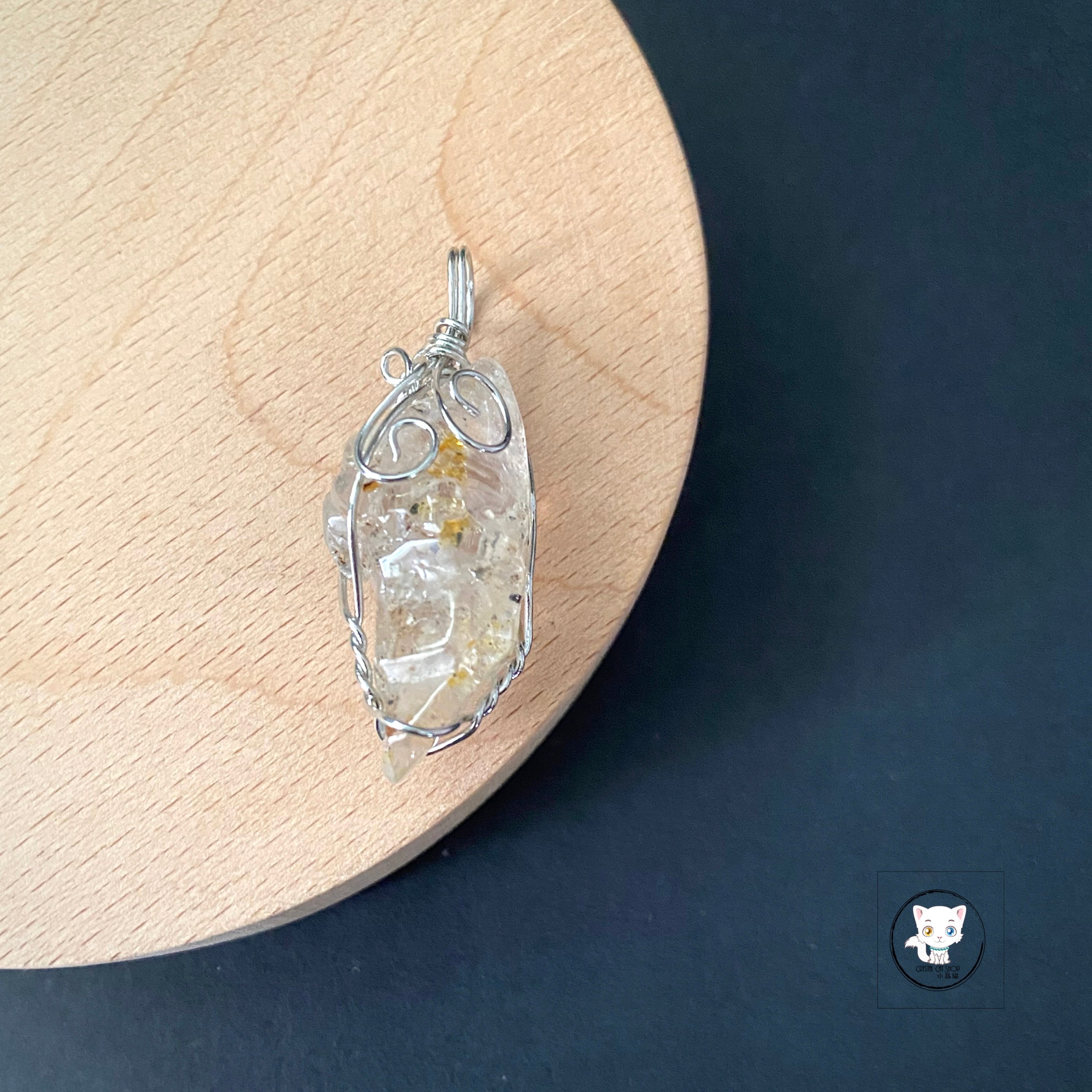 油膽閃靈鑽14K繞線吊墜(送S925頸鏈) 晶石尺寸:約21.5mm高 x 14.5mm濶 頸鏈長度:約45cm 【閃靈鑽介紹】 💖 閃靈鑽(Herkimer Diamond)是一種淨化之石,在淨化同時並能提昇水晶能量。 💟 閃靈鑽又稱赫基蒙水晶,對應所有脈輪,尤其頂輪。主要產地為美國紐約,世界多個地方亦有發現。外形上也是全天然,雙尖、短柱身(有時可以是極短),沒經人工打磨,因外形上看似鑽石原石的八面體,又在美國的赫基蒙礦找到,所以被命名為赫基蒙鑽石。 🔆 閃靈鑽可追溯到五億年之久,一般是雙尖的,常會帶有石油和/或油或煤等沉積物,或常帶有黑色的碳氫化合物包裹體,它們都來自沉積岩。 ✅ 功效: 閃靈鑽的功效包括促進能量流動、打通脈輪、強化氣場,提升其他水晶能量,平衡和淨化七輪。它能排除負面影響,增強專注力和記憶力,提高學習能力和工作效率,讓頭腦清晰。此外,閃靈鑽還能鎮宅、護身,帶來好運與平安,並讓人感到平和與開朗。 🔮 功效非精密科學,僅供參考。 📍天然水晶均有天然紋路,冰裂,棉絮或少許礦缺,如介意者,請注意。 ⚠️ 敬請留意 : 照片因拍攝光線或電腦螢幕設定不同,晶石顏色與實物可能會有輕微色差,顏色以實物為準。