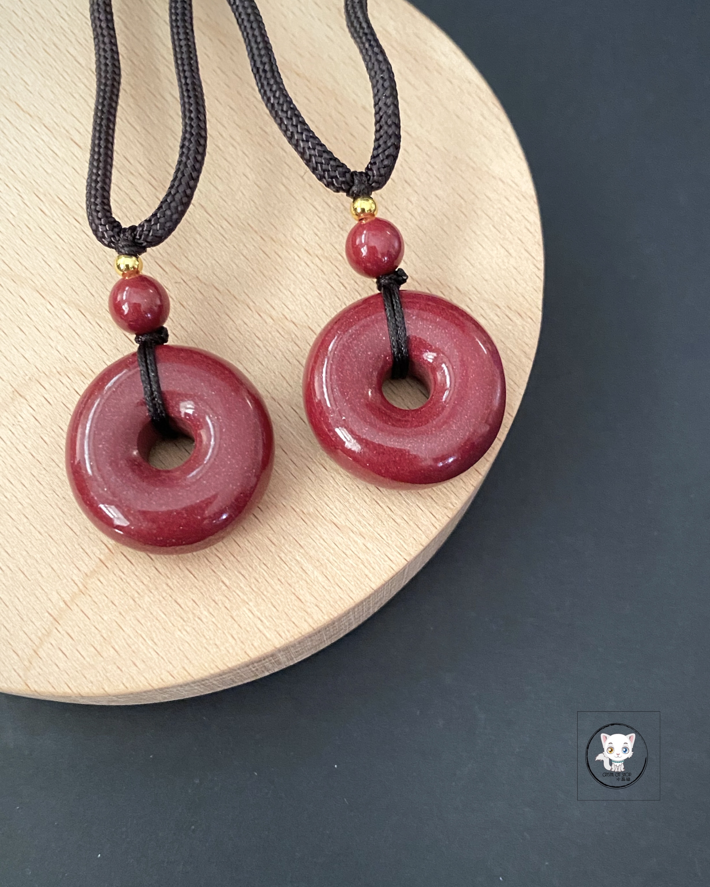 紫金砂硃砂平安扣頸繩