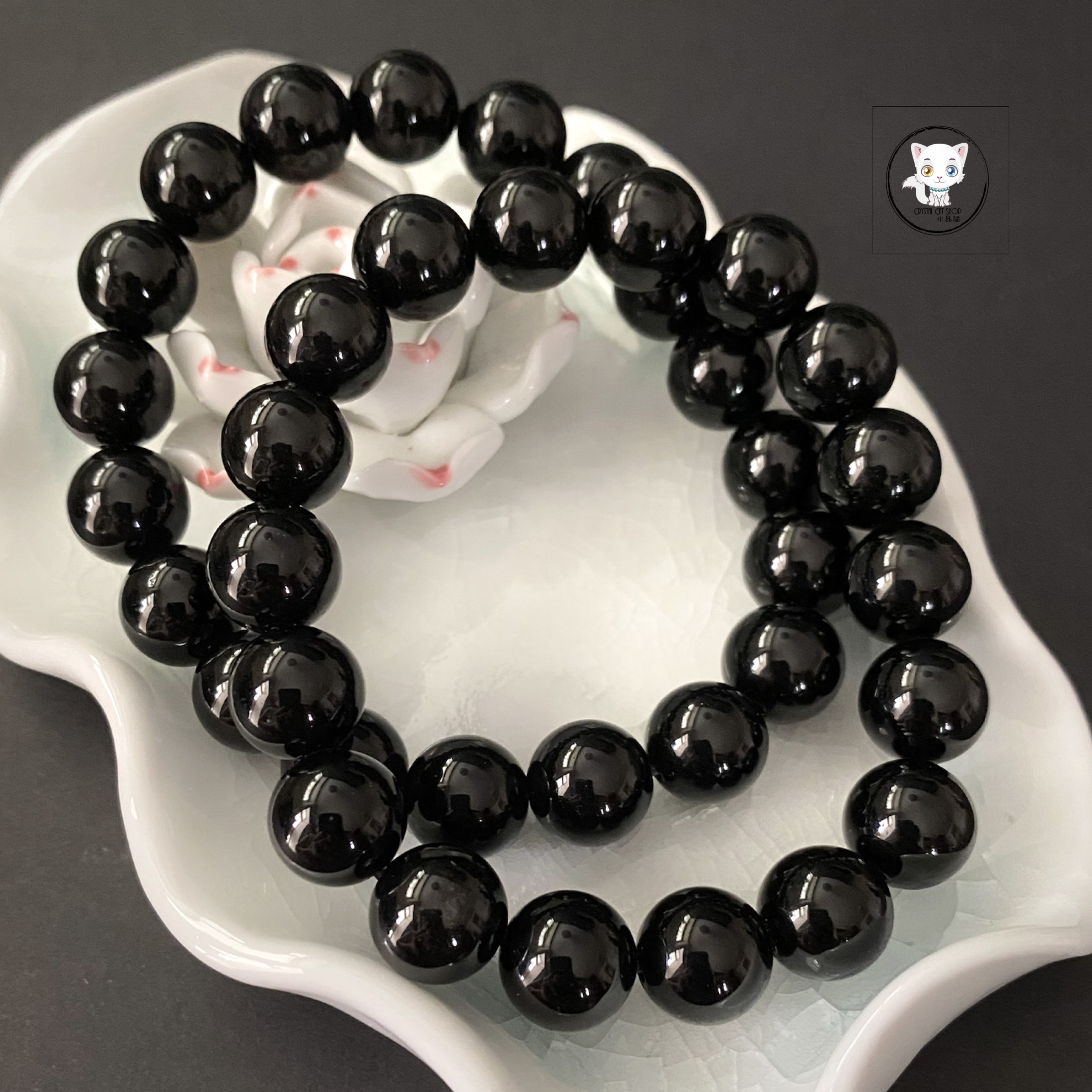 天然黑曜石手鏈 12mm