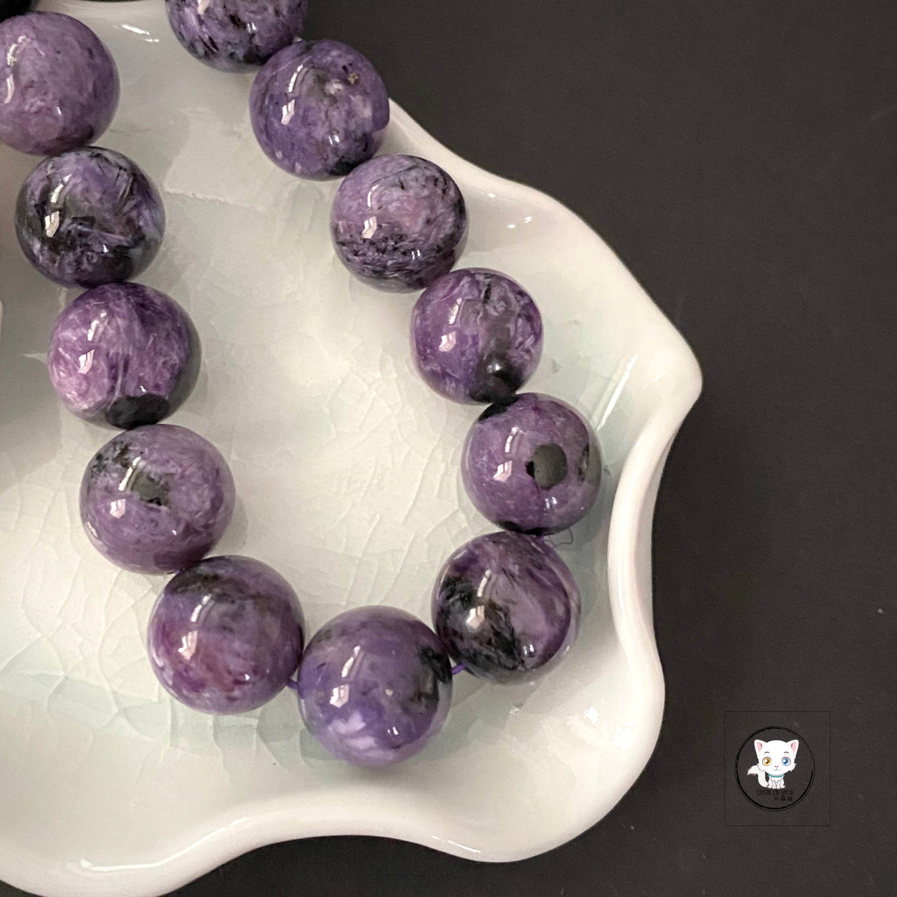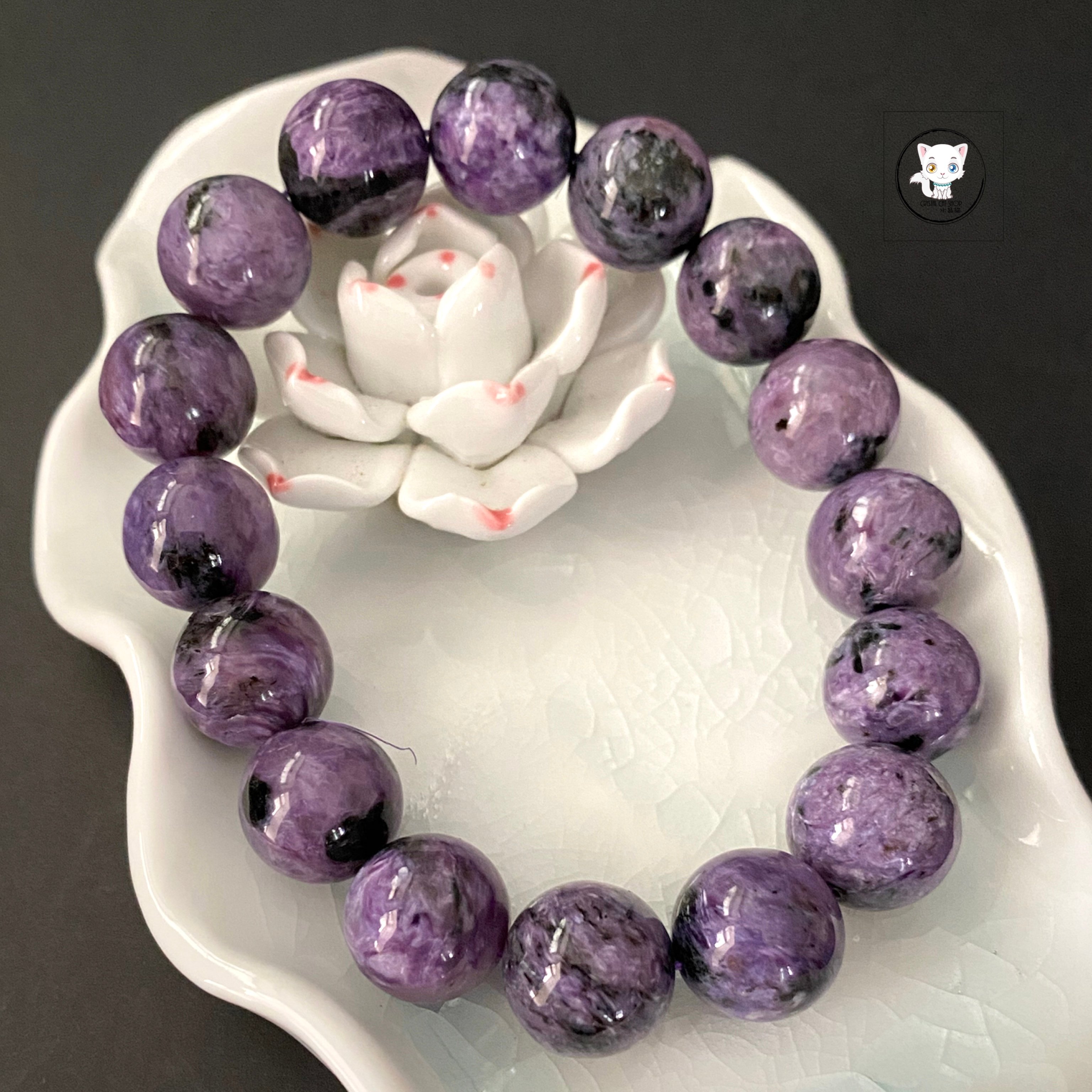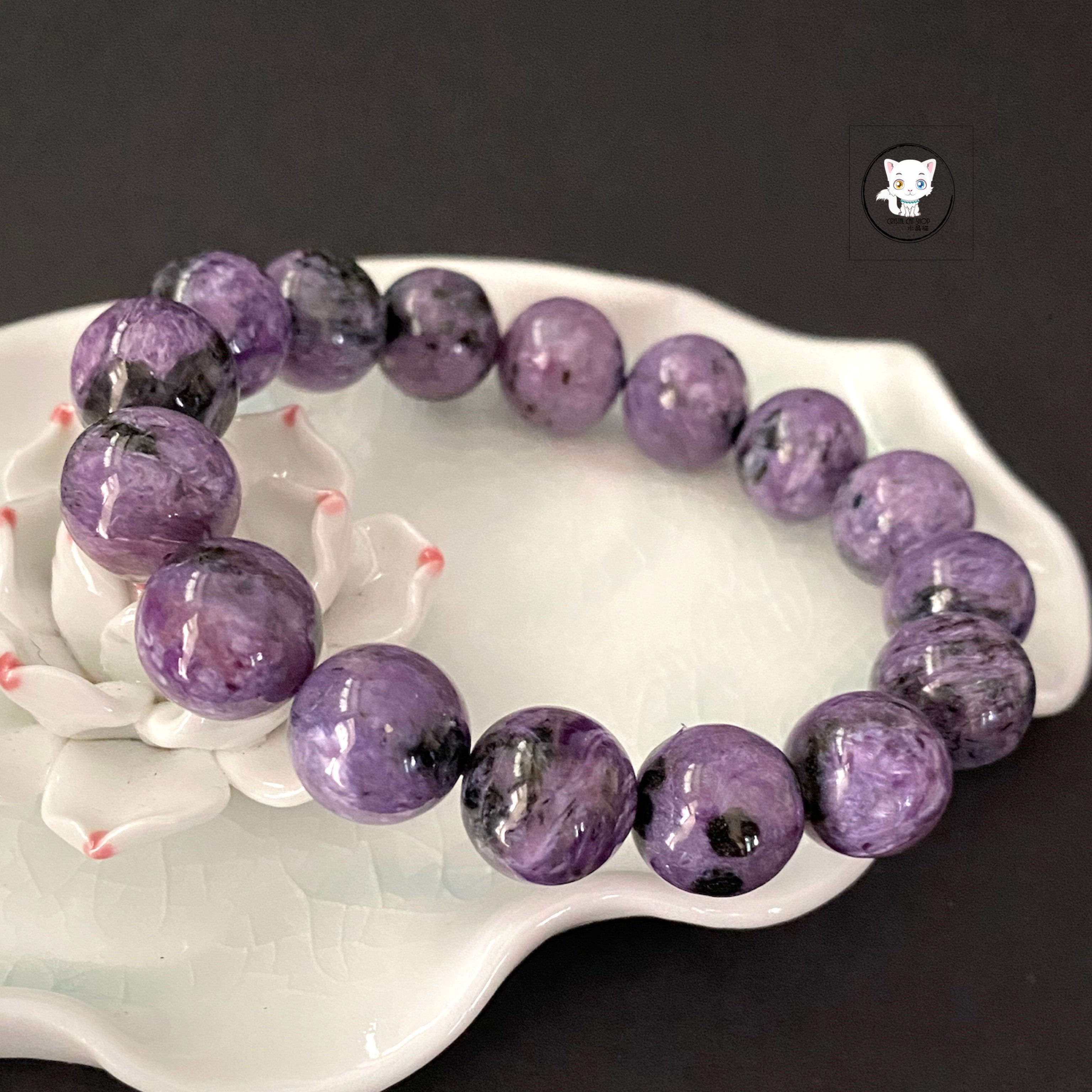 💖 紫龍晶(Charoite)乃紫色為主調,由細長纖狀的紫色和白色組成,層次分明,龍紋圖案更是一絕。紫龍晶擁有強大的磁場靈力,能夠治療身心創傷,助你看到生活中的好事情。