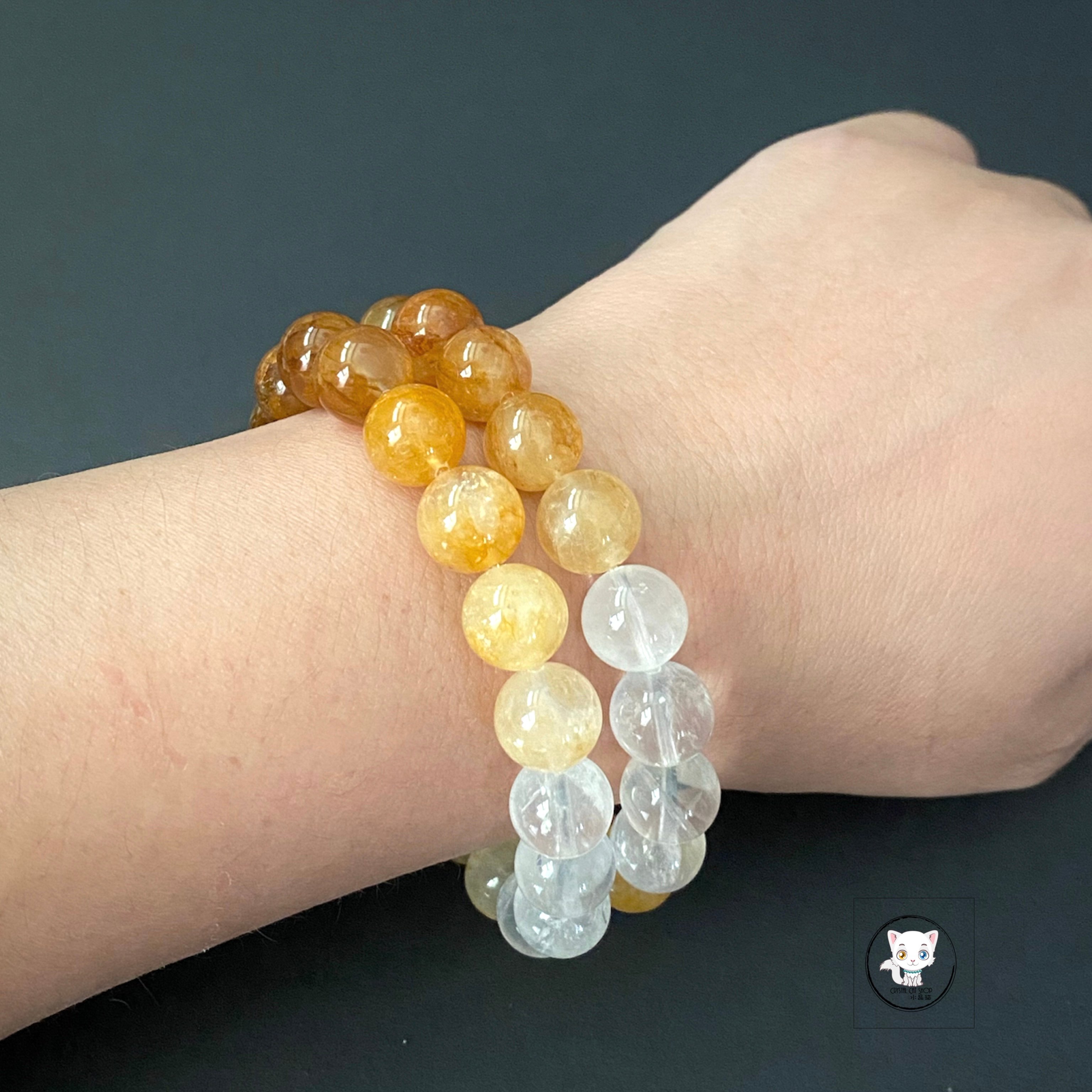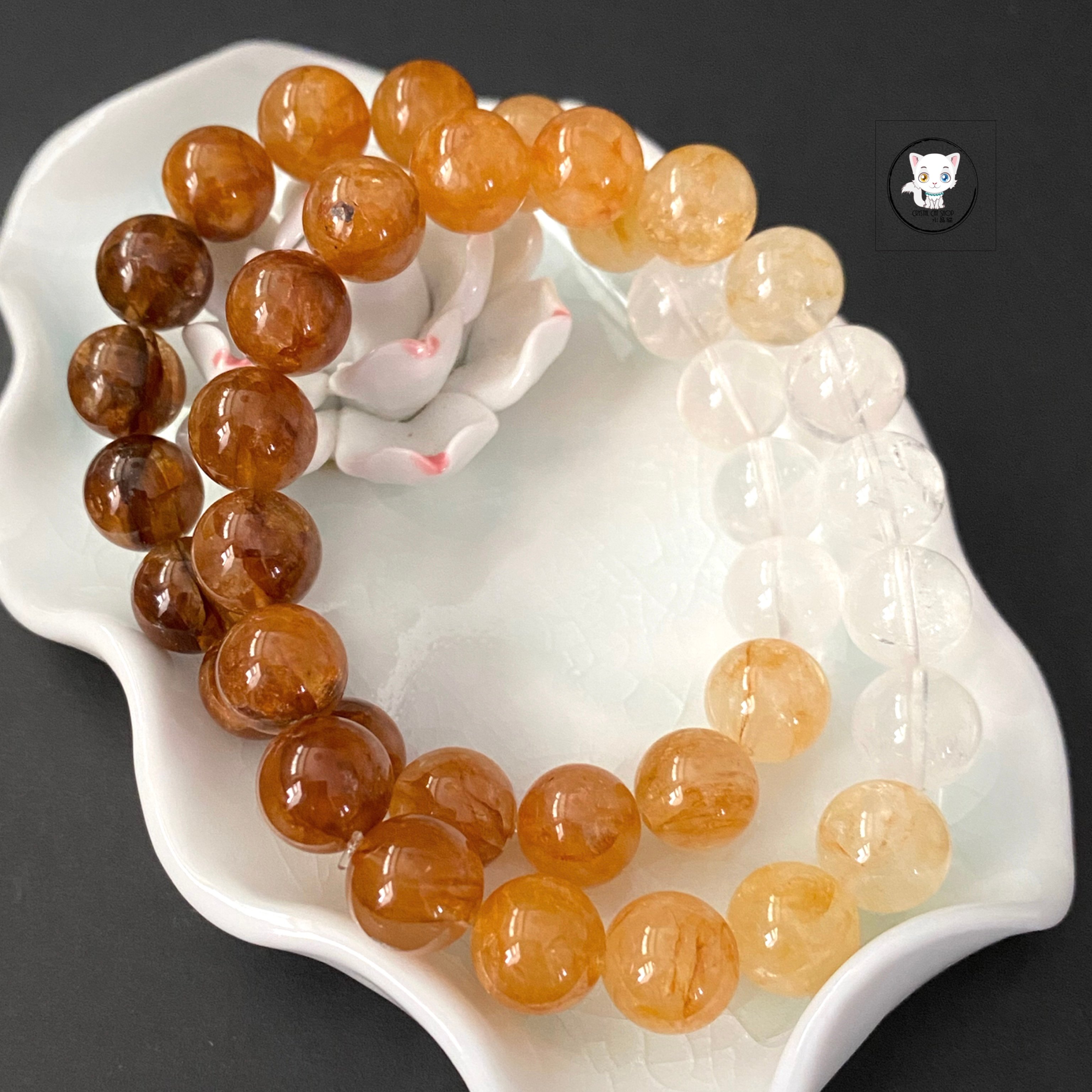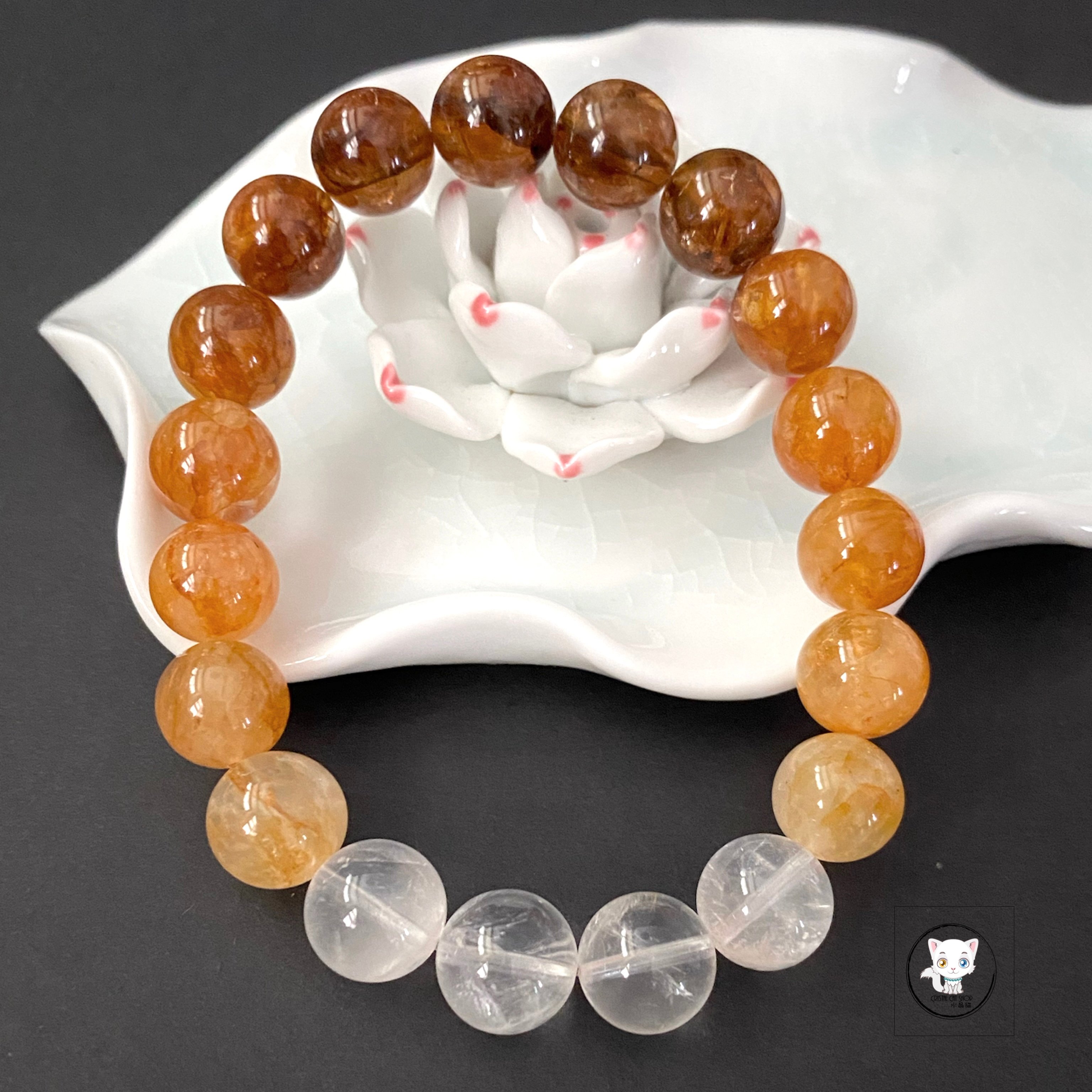 天然黃膠花水晶漸變手鏈 10.8mm