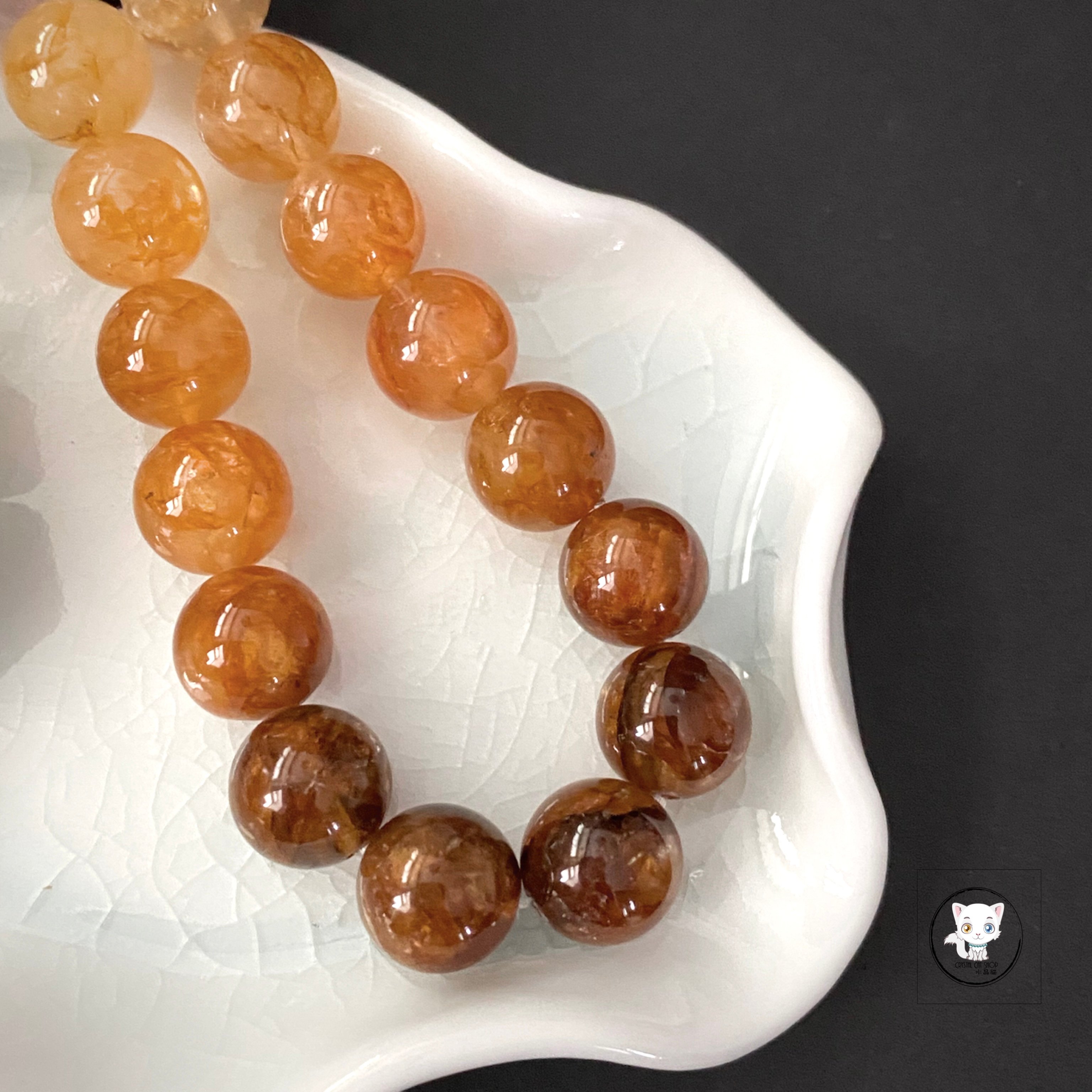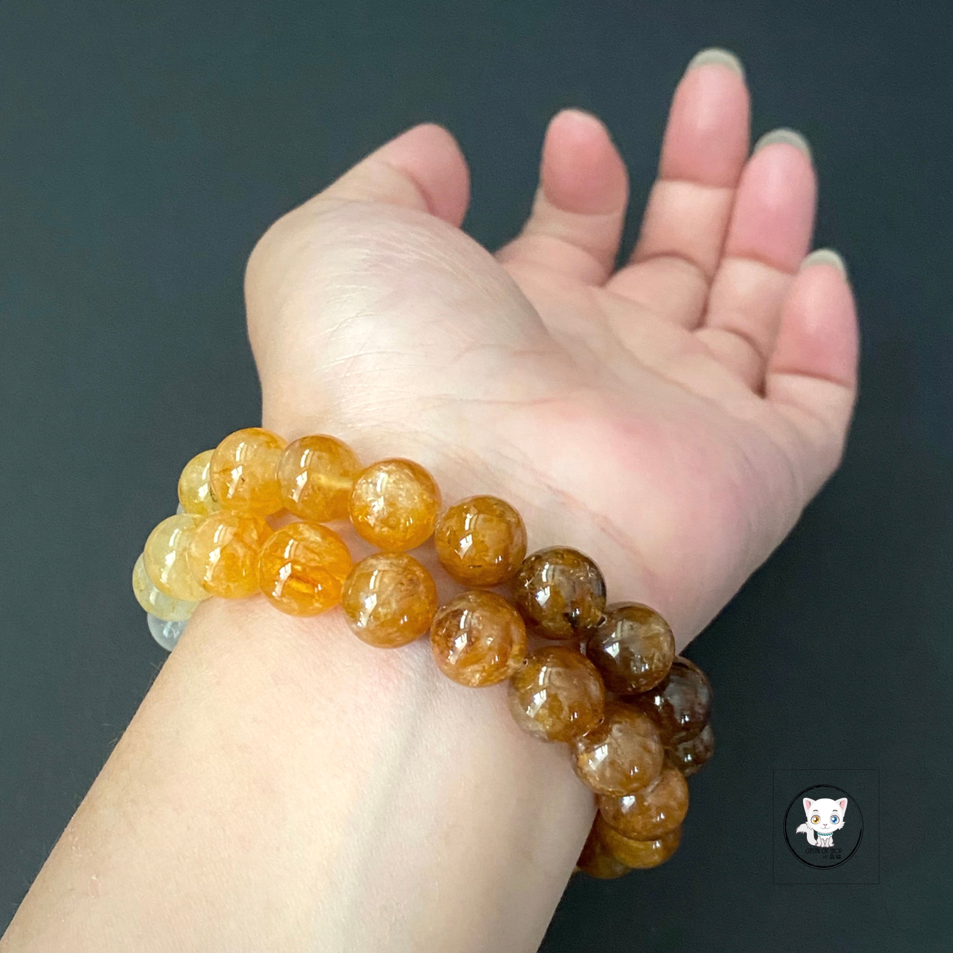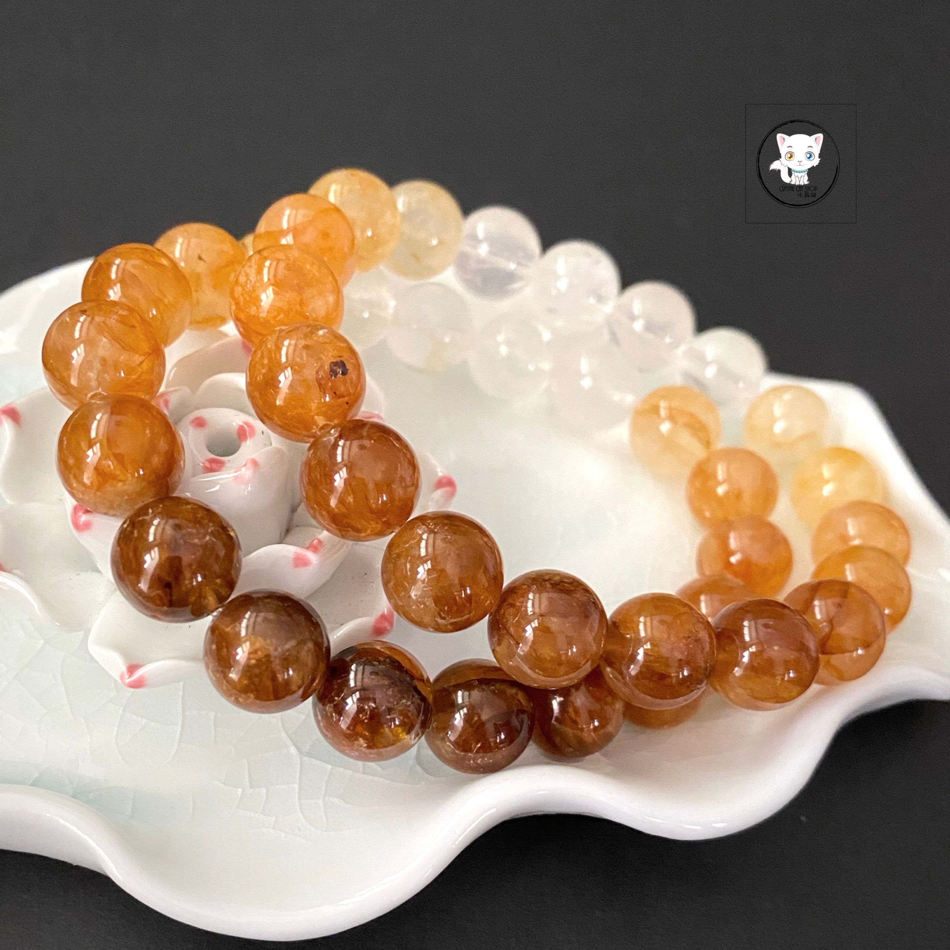 天然黃膠花水晶漸變手鏈 10.8mm
