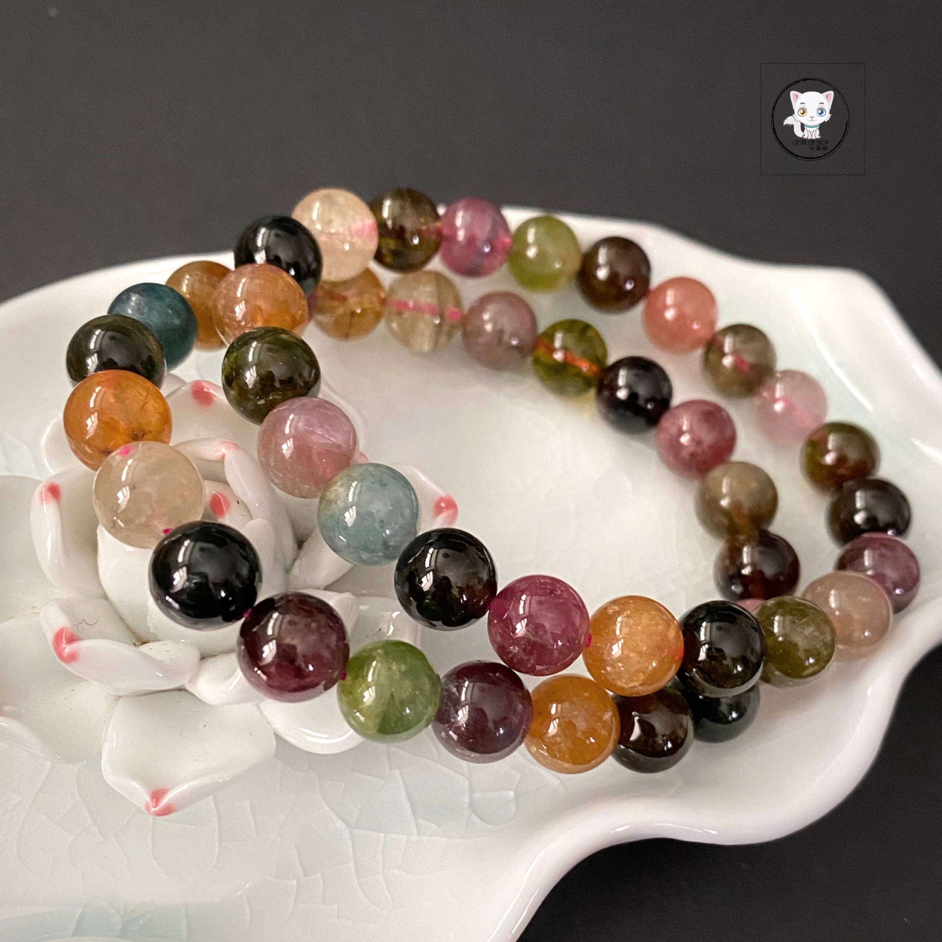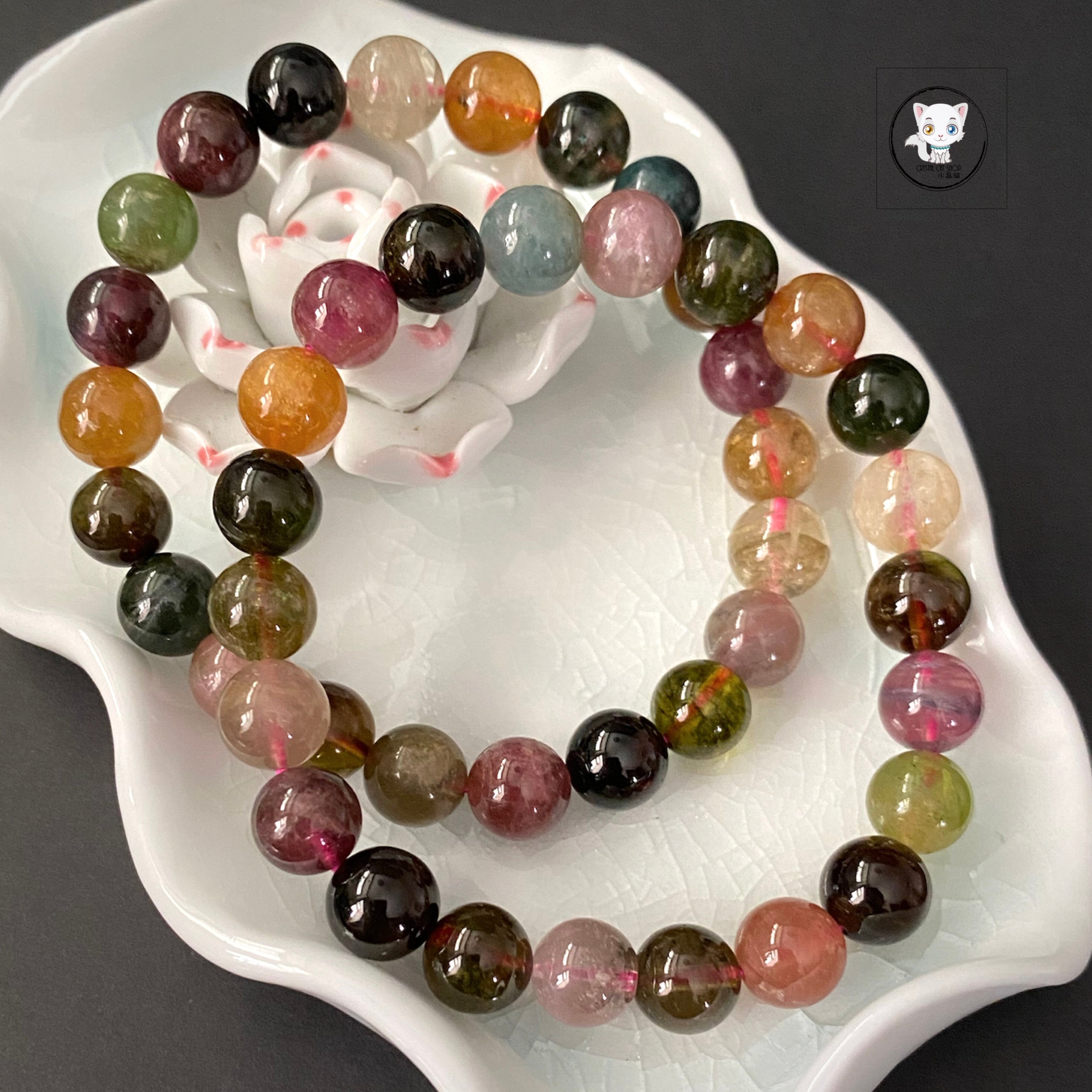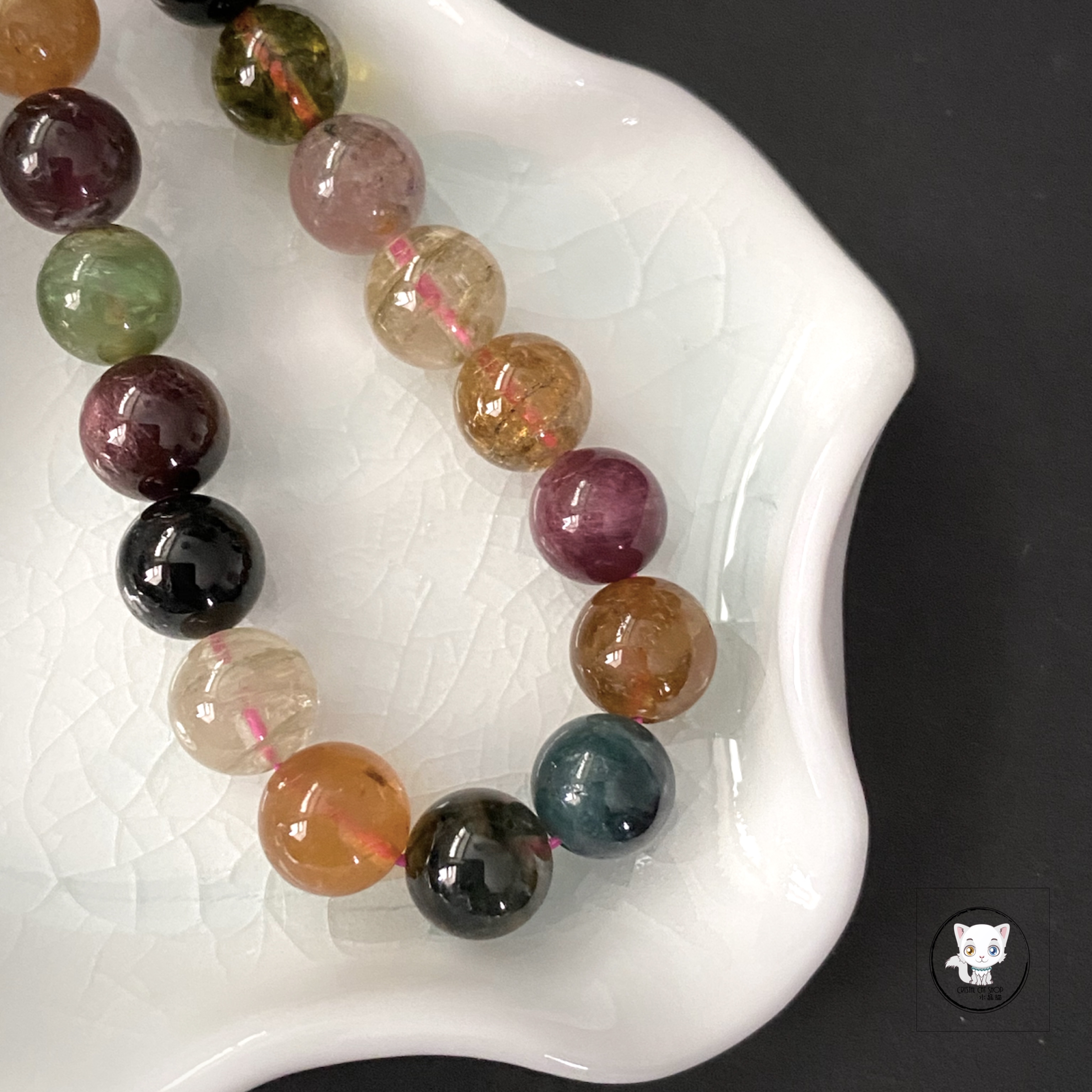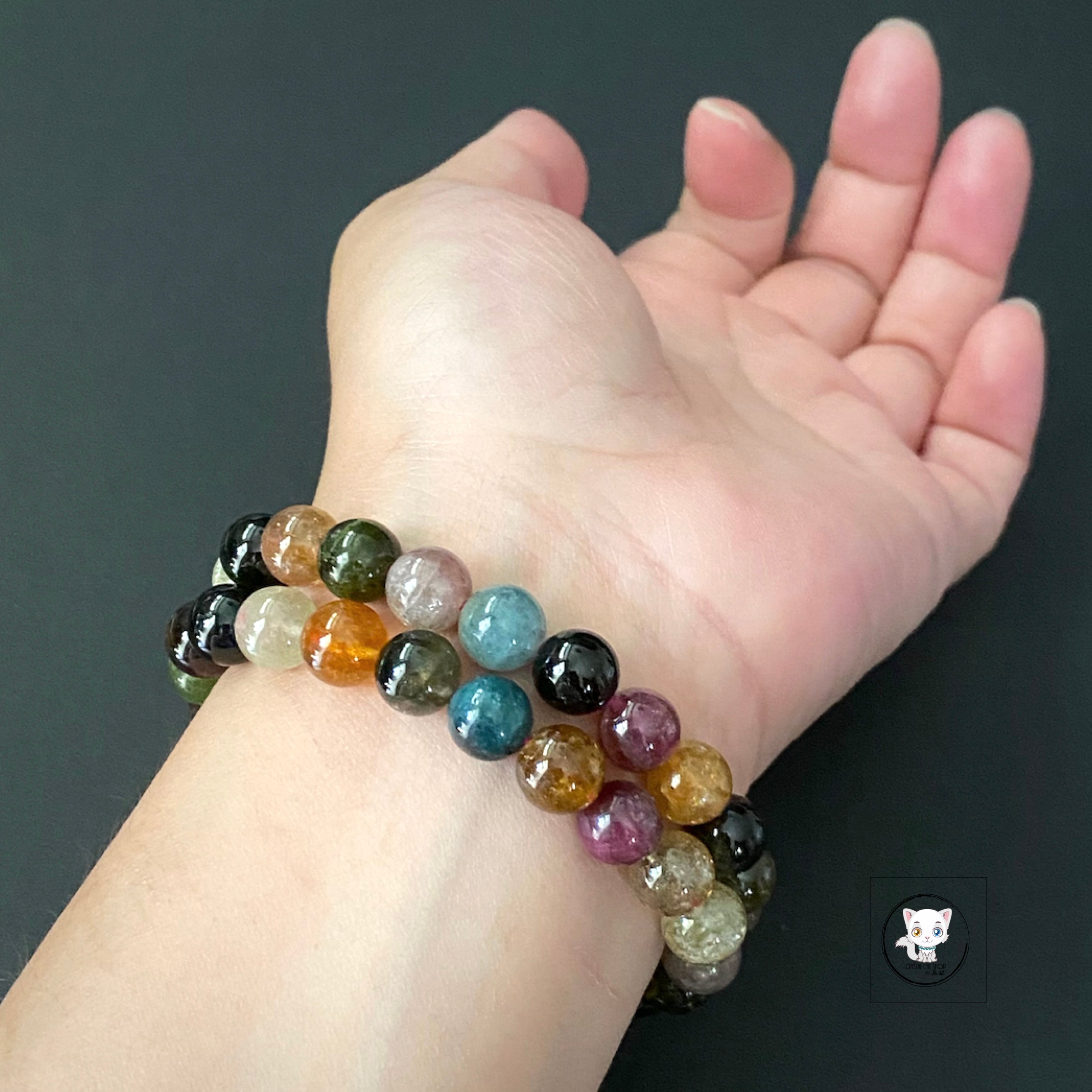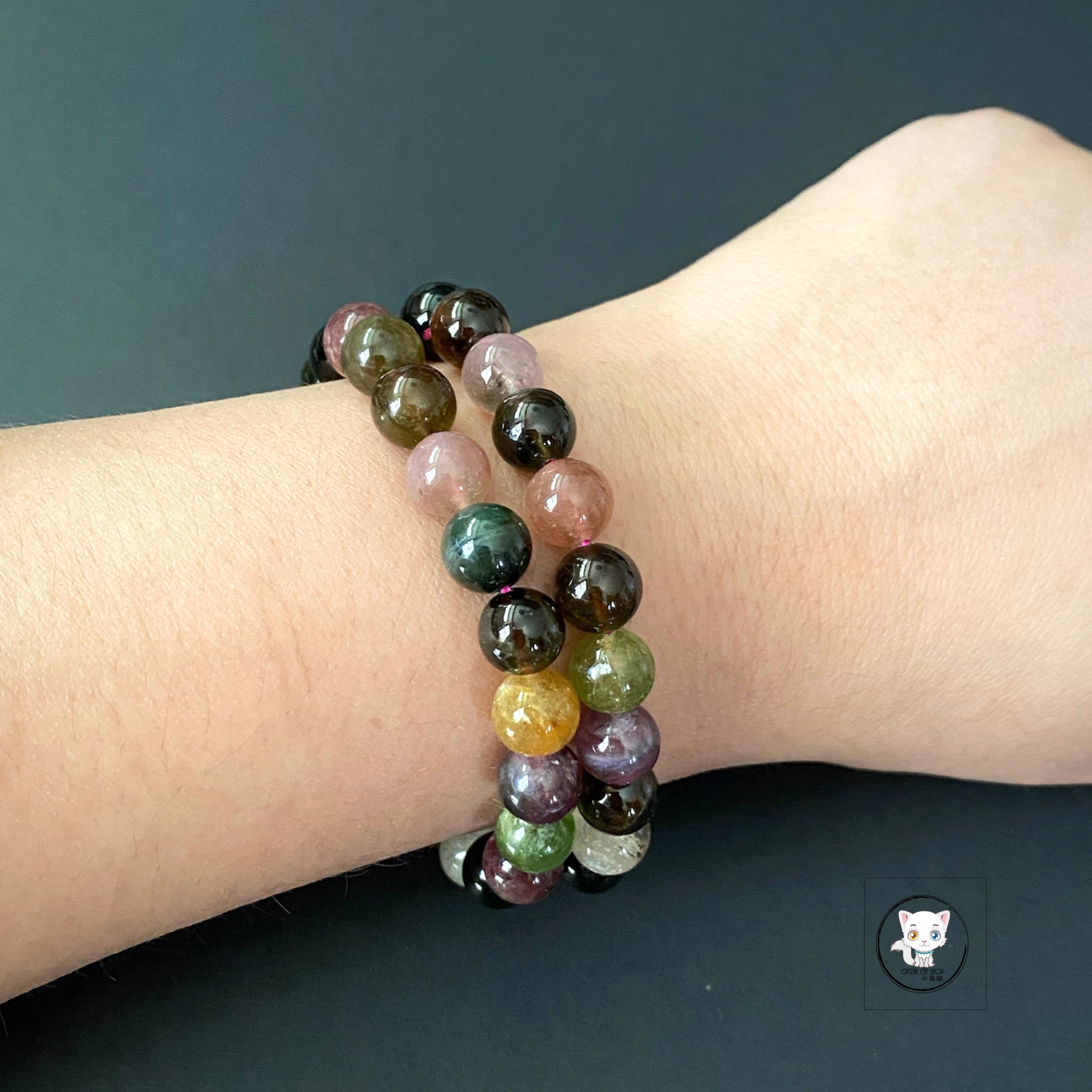 巴西老礦彩碧璽手鏈 晶石尺寸:約8.6mm 適合手圍:約16.5cm 【碧璽介紹】 💖 碧璽(Tourmaline)又稱願望石,能助您實現願望,廣結益友,它可以帶給您旺盛的財富,為您的事業錦上添花。碧璽是受人喜愛的寶石品種,被譽為十月誕生石。 碧璽是一種天然能量寶石,具有永久放射遠紅外線的特點,是天然的心腦血管保護神。 ✅ 功效: 1)碧璽是水晶家族中最聚財、聚福、辟邪的寶石,女性佩戴更有旺夫旺財之功效,所以也有人稱碧璽為福晶。 2)碧璽對應所有脈輪。促進細胞代謝、疏通血氣、助風濕/關節炎、使人更熱情、開朗舒懷、助人緣、改善人際關係、化解幅射、助愛情/友情、激發創造力、帶來靈感、願望石/助行動力/促進願望成真。 🔮 功效非精密科學,僅供參考。 ❇️ 質素如一,隨機發貨 ❇️ 📍天然水晶均有天然紋路,冰裂,棉絮或少許礦缺,如介意者,請注意。 ⚠️ 敬請留意 : 照片因拍攝光線或電腦螢幕設定不同,晶石顏色與實物可能會有輕微色差,顏色以實物為準。