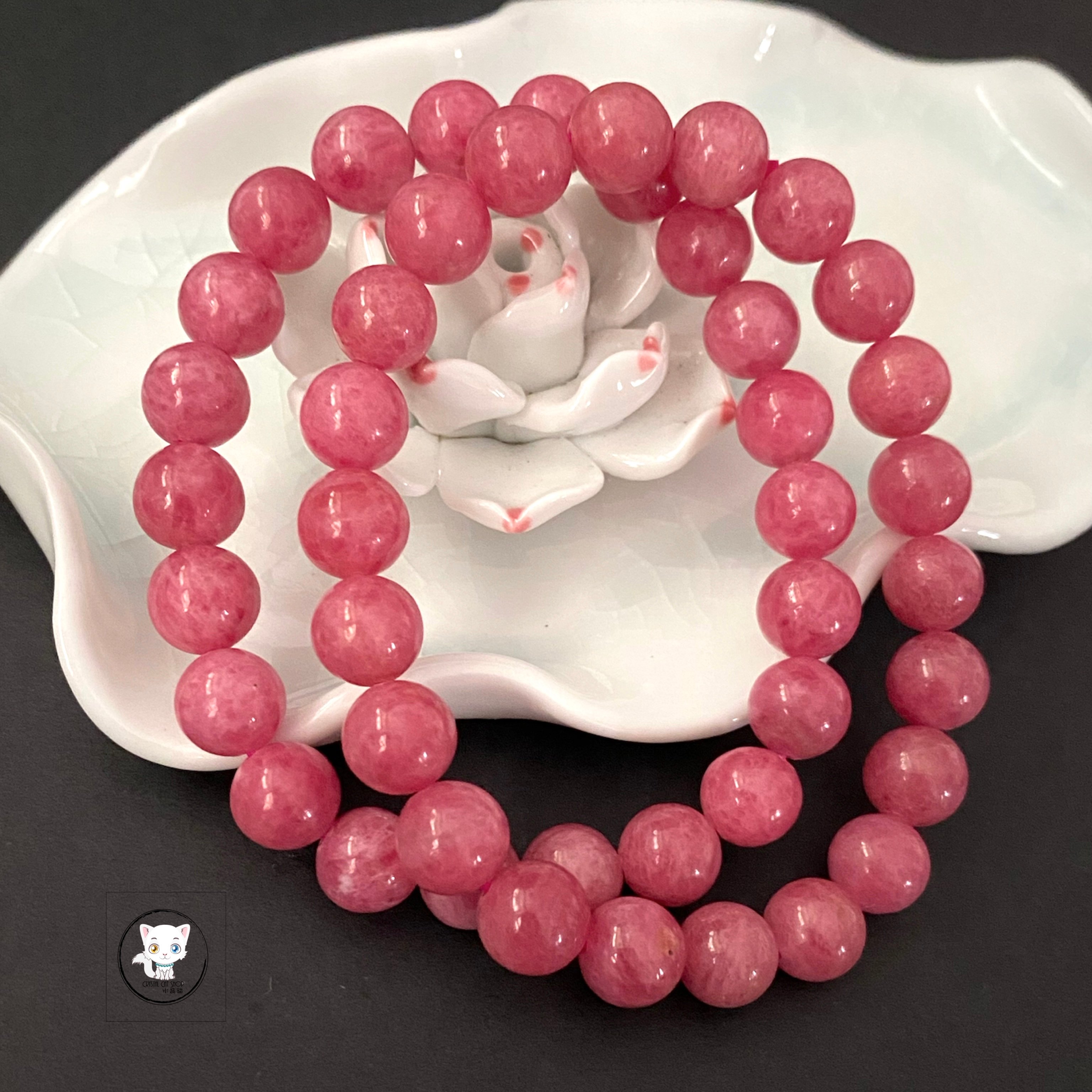 巴西薔薇輝石手鏈 晶石尺寸:約8.6mm 適合手圍:約16.5cm 【薔薇輝石介紹】 💖 薔薇輝石(Rhodonite)是一種極為美麗的寶石,具有獨特的外觀和豐富的色彩。雖然硬度為5.5-6.5,但仍能呈現良好拋光,並擁有多種功效。 ✅ 薔薇輝石有助於培養高貴情操,擴闊心胸,建立自我價值觀,保持冷靜,清晰思考。其紅潤顏色還能轉運,為您帶來好運。 💜 此外,薔薇輝石還能調和親人關係,增進愛情和友情,成為您人際關係和愛情運的助力。 🔮 功效非精密科學,僅供參考。 ❇️ 質素如一,隨機發貨 ❇️ 📍天然水晶均有天然紋路,冰裂,棉絮或少許礦缺,如介意者,請注意。 ⚠️ 敬請留意 : 照片因拍攝光線或電腦螢幕設定不同,晶石顏色與實物可能會有輕微色差,顏色以實物為準。