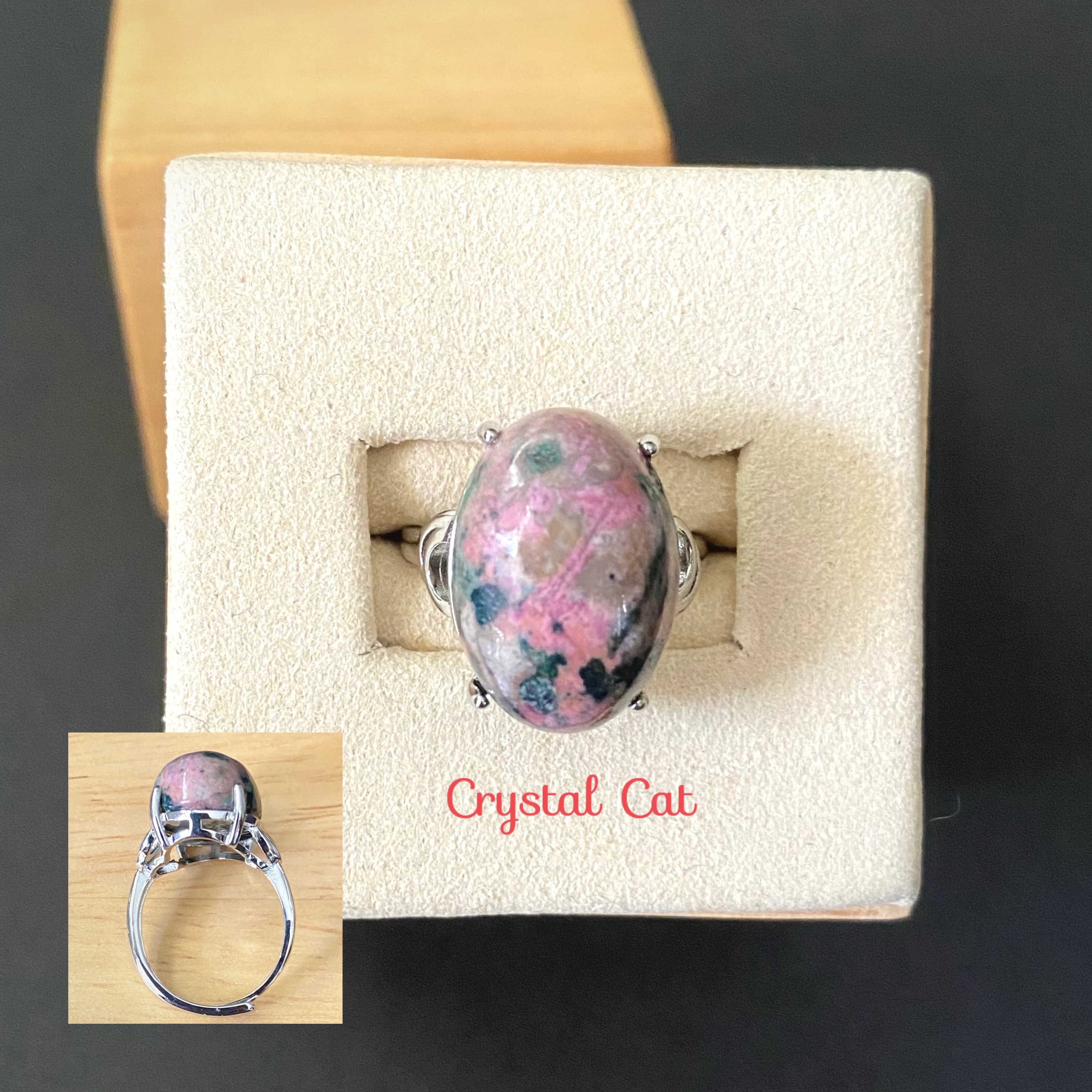 櫻花粉舒俱萊半銀鑲嵌戒指 晶石尺寸:約18mm高 x 13mm濶 x 10.5mm厚 適合圈口:活口,可調較 【晶石介紹】 💖 舒俱萊石(Sugilite)是一種稀有寶石,被譽為「南非國寶石」,具有多種功效和療癒能量。尤其是黑色或帶黑色調的舒俱萊石,它能夠打通經絡和七重輪,有著卓越的治療功效,讓身體得到全面的照顧。 舒俱萊石最初是由一位石油探勘家 Mr. Kenichi Sugi 在1944年發現的,並以他的名字來命名。直到1979年南非的一些 Wessels 錳礦崩潰後,才發現達到寶石級的舒俱萊石。舒俱萊石的外觀呈現各種不透明的深淺紫與紫紅色交織,甚或深至黑色,皇家紫為最優質的顏色,長久佩帶能令顏色的光彩更亮麗。 ✅ 舒俱萊石由多種礦物元素組成,包括鉀、鈉、鐵、鋰等,因此它具有豐富的能量和療癒效果。舒俱萊石能夠清除、淨化全身脈輪負能量,據說能消除因果業障,亦能改善因果業力導致的無名疾病,被稱為「因果石」。舒俱萊石還能打通靈脈,增強第六感。此外,舒俱萊石能夠吸收轉換紫色光,適合創作人士佩戴,也能幫助我們在人生的新階段有好的開始,讓人懂得謙虛,處世更加圓滑周延,消除負面心念,贏得人們的友誼。 💟 立即選購您心儀的舒俱萊石產品,開啟您的療癒之旅❣️ 🔮功效非精密科學,僅供參考。 📍天然水晶均有天然紋路,冰裂,棉絮或少許礦缺,如介意者,請注意。 ⚠️敬請留意:照片顏色可因不同場景或室內白燈光下拍攝,所有晶石已極力忠於原色,但由於電腦螢幕設定不同,晶石呈現顏色均稍為有微色差,因此顏色以實物為準。