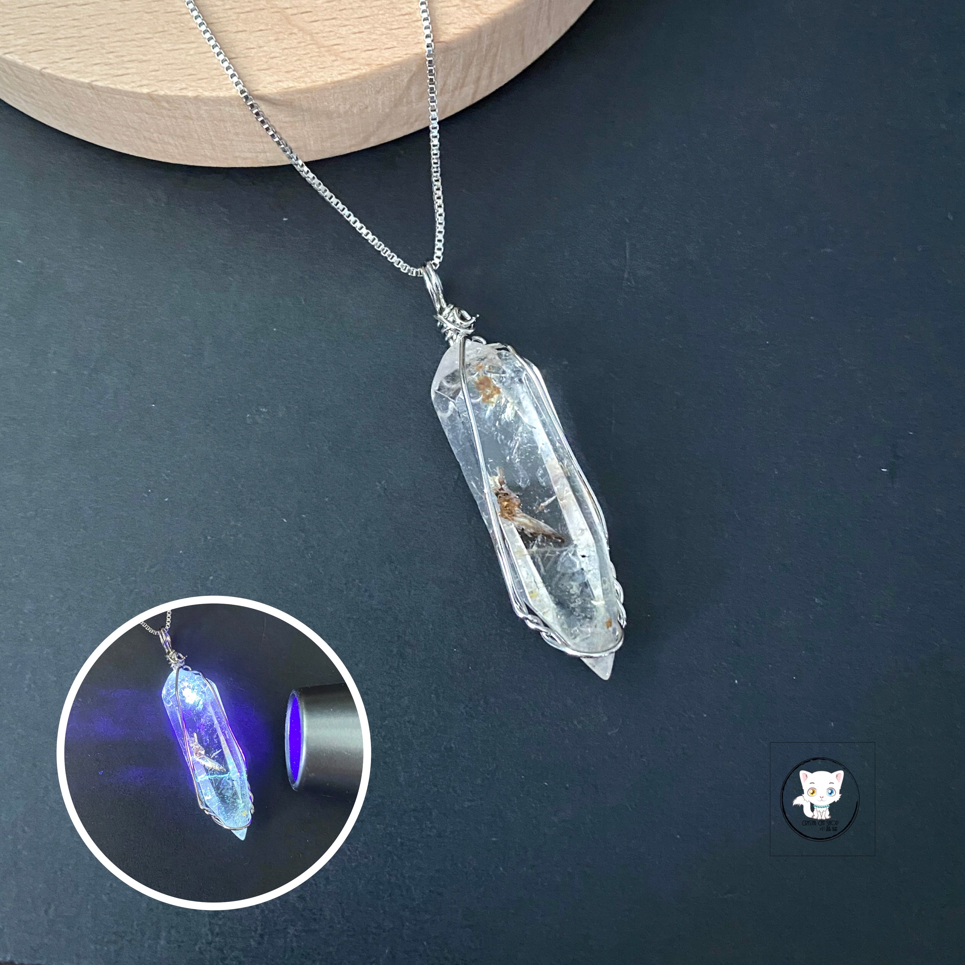 油膽閃靈鑽14K繞線吊墜(送S925頸鏈) 晶石尺寸:約24mm高 x 15.6mm濶 頸鏈長度:約45cm 【閃靈鑽介紹】 💖 閃靈鑽(Herkimer Diamond)是一種淨化之石,在淨化同時並能提昇水晶能量。 💟 閃靈鑽又稱赫基蒙水晶,對應所有脈輪,尤其頂輪。主要產地為美國紐約,世界多個地方亦有發現。外形上也是全天然,雙尖、短柱身(有時可以是極短),沒經人工打磨,因外形上看似鑽石原石的八面體,又在美國的赫基蒙礦找到,所以被命名為赫基蒙鑽石。 🔆 閃靈鑽可追溯到五億年之久,一般是雙尖的,常會帶有石油和/或油或煤等沉積物,或常帶有黑色的碳氫化合物包裹體,它們都來自沉積岩。 ✅ 功效: 閃靈鑽的功效包括促進能量流動、打通脈輪、強化氣場,提升其他水晶能量,平衡和淨化七輪。它能排除負面影響,增強專注力和記憶力,提高學習能力和工作效率,讓頭腦清晰。此外,閃靈鑽還能鎮宅、護身,帶來好運與平安,並讓人感到平和與開朗。 🔮 功效非精密科學,僅供參考。 📍天然水晶均有天然紋路,冰裂,棉絮或少許礦缺,如介意者,請注意。 ⚠️ 敬請留意 : 照片因拍攝光線或電腦螢幕設定不同,晶石顏色與實物可能會有輕微色差,顏色以實物為準。