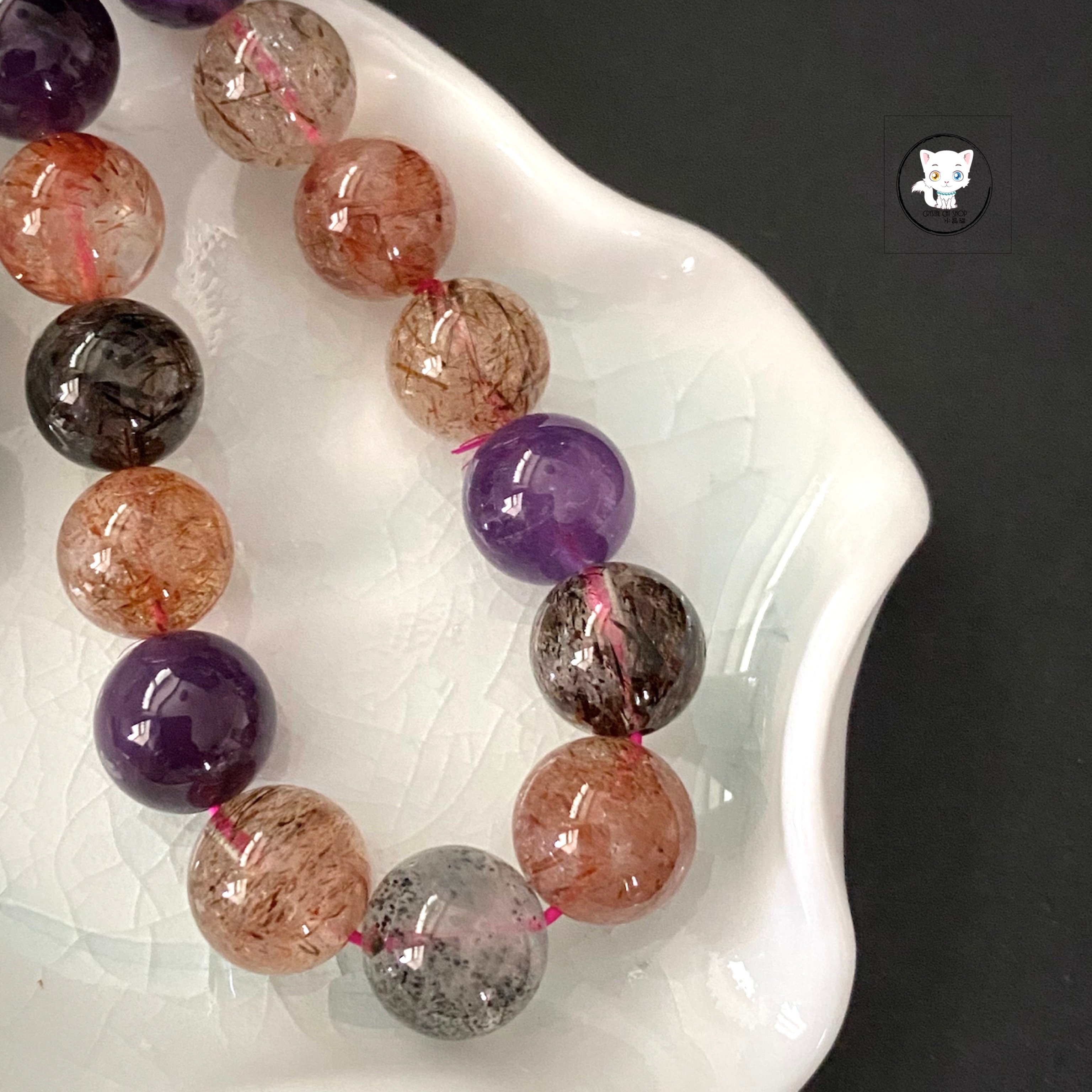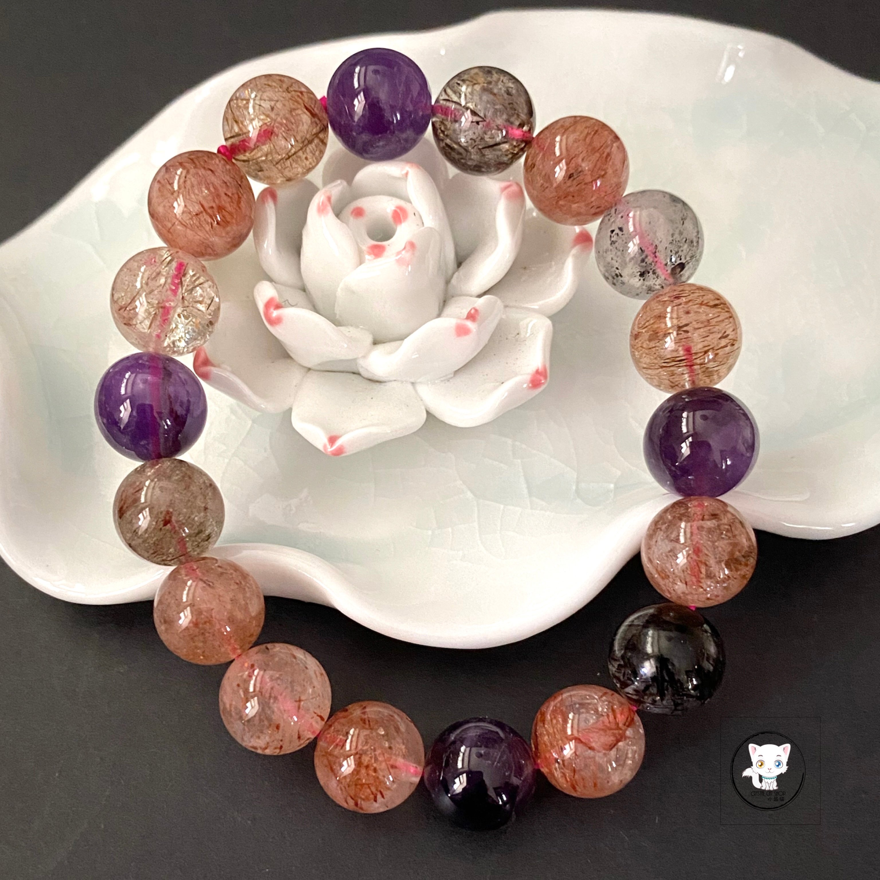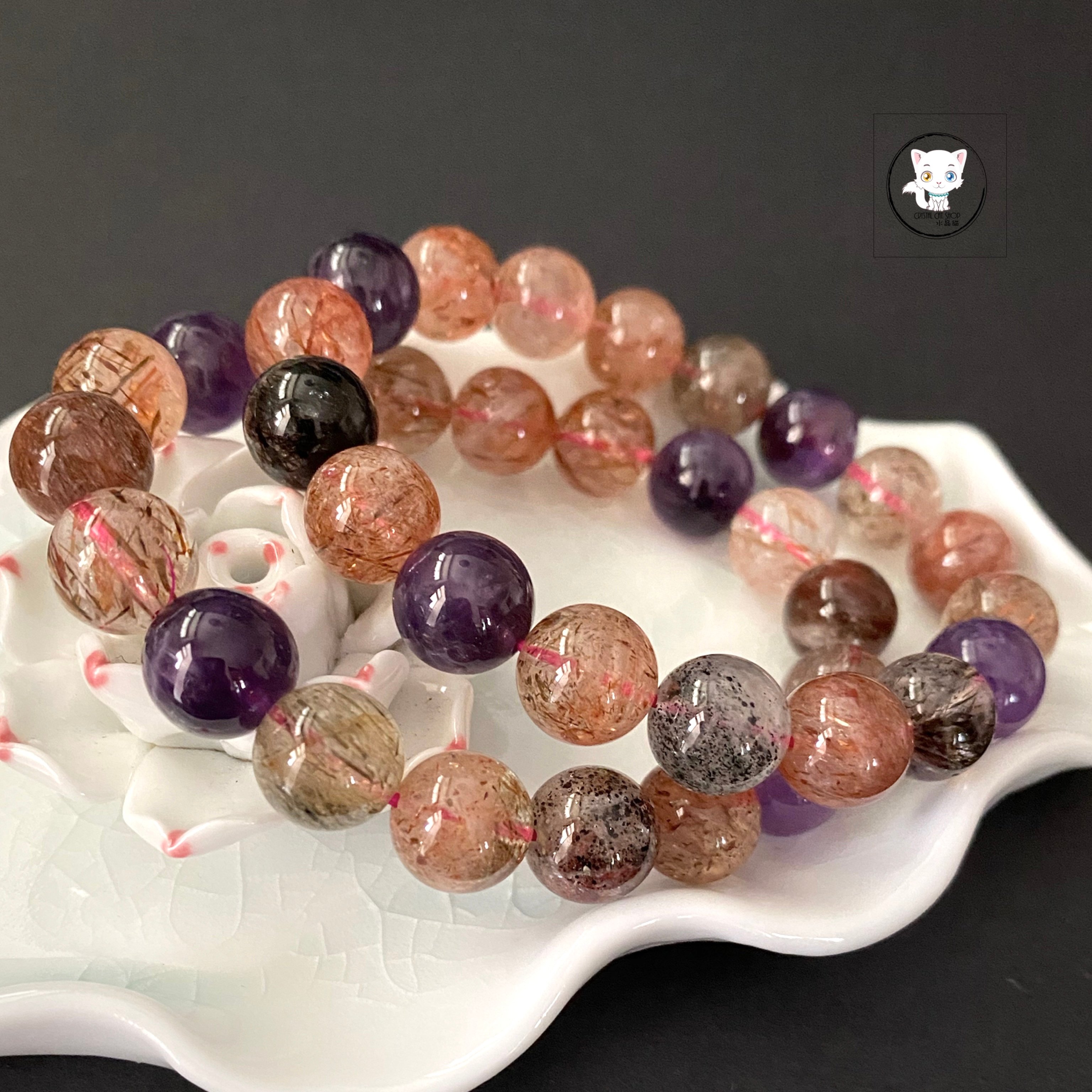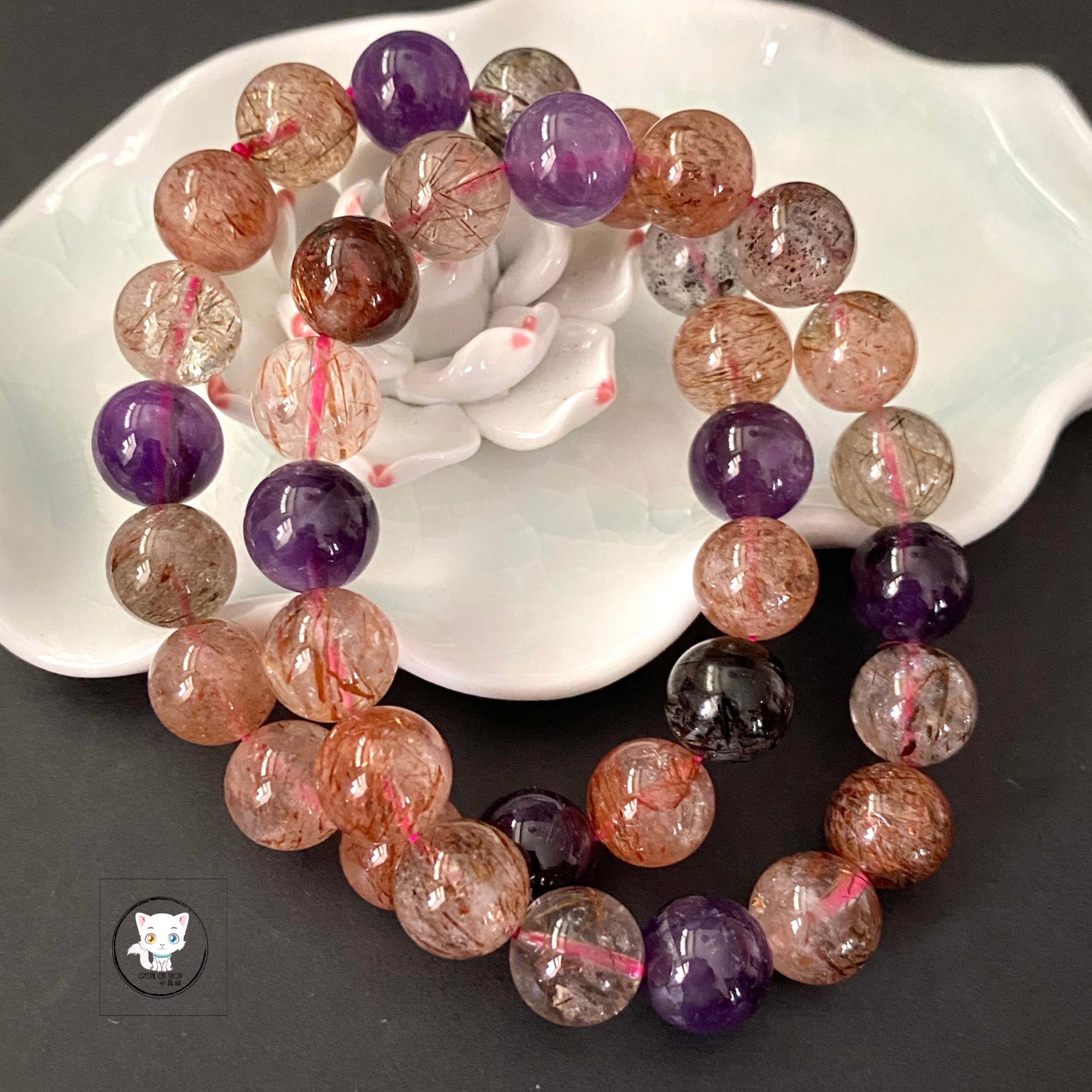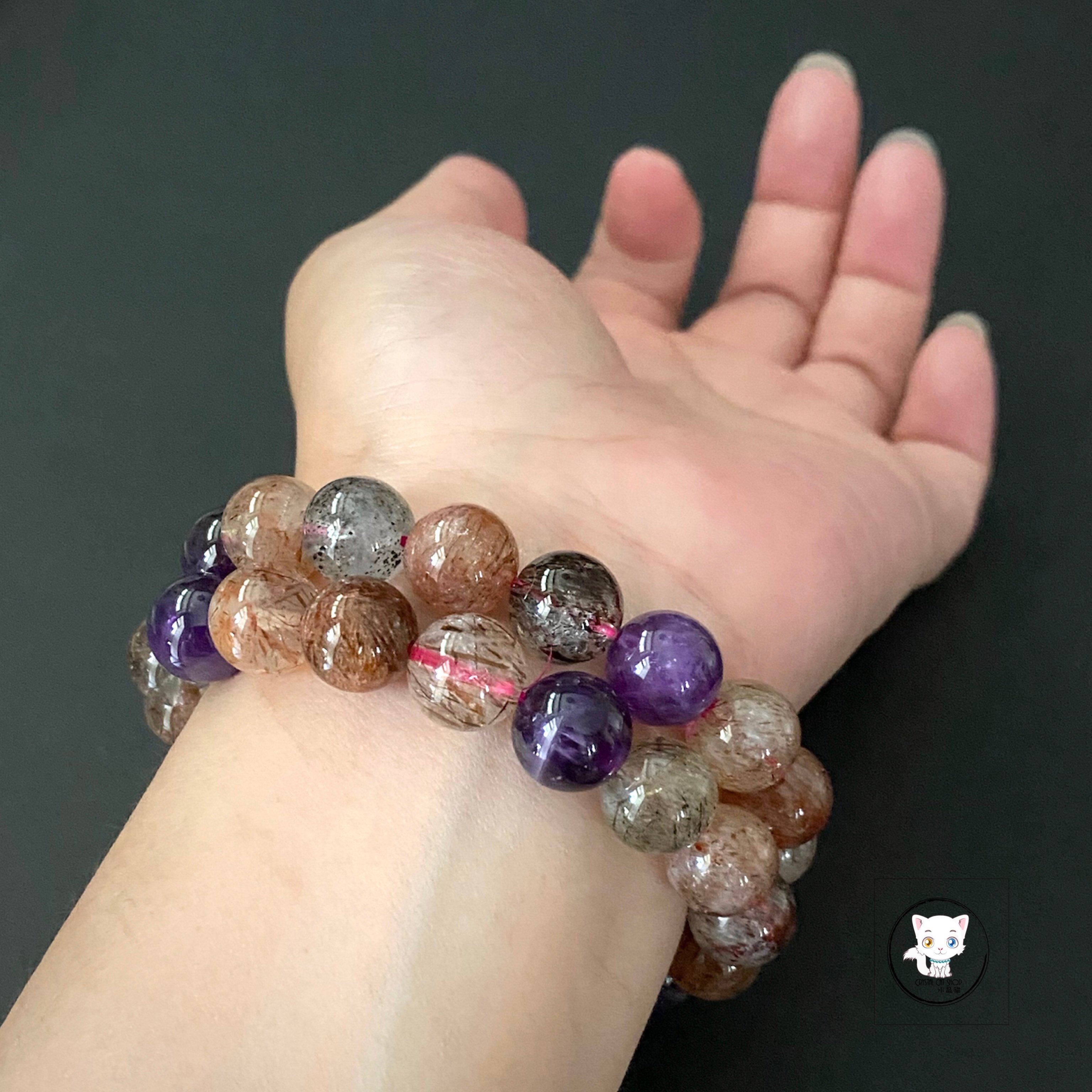 超級七/Super7手鏈 晶石尺寸:約11mm 適合手圍:約17cm 【超級七介紹】 💖 獨特之處 Super Seven 神奇地融合了七種礦石,能量強大且獨一無二。每塊晶石未必同時具備七種屬性,卻因此更顯珍貴。它無需淨化與啟動,自帶源源不絕的能量,是天然的能量寶庫! ✅ 核心功效 1. 全面平衡:打開、平衡與激發人體所有脈輪,涵蓋財富、愛情、人緣、貴人、靈性等多重功效。 2. 身心療癒:改善腸胃不適、消化問題,強化腎上腺與甲狀腺功能,淨化負面情緒,提升正面能量。 💟 七種共生礦精華 * 紫水晶:穩固愛情,啟發思考,緩解負能量 * 白水晶:促進溝通,增強人際,暢通能量 * 茶晶:提升專注,穩定心緒,接地能量 * 黃磷鐵礦:激發創意,培養積極,仁慈心態 * 金紅石:調節情緒,強化人際,正向能量 * 針鐵礦:高效溝通,集中精神,強化專注 * 纖鐵礦:穩定能量,清晰思路,增強記憶 🌈 Super Seven,一石多能,為您帶來全方位的能量守護! 🔮 功效非精密科學,僅供參考。 ❇️ 質素如一,隨機發貨 ❇️ 📍天然水晶均有天然紋路,冰裂,棉絮或少許礦缺,如介意者,請注意。 ⚠️ 敬請留意 : 照片因拍攝光線或電腦螢幕設定不同,晶石顏色與實物可能會有輕微色差,顏色以實物為準。