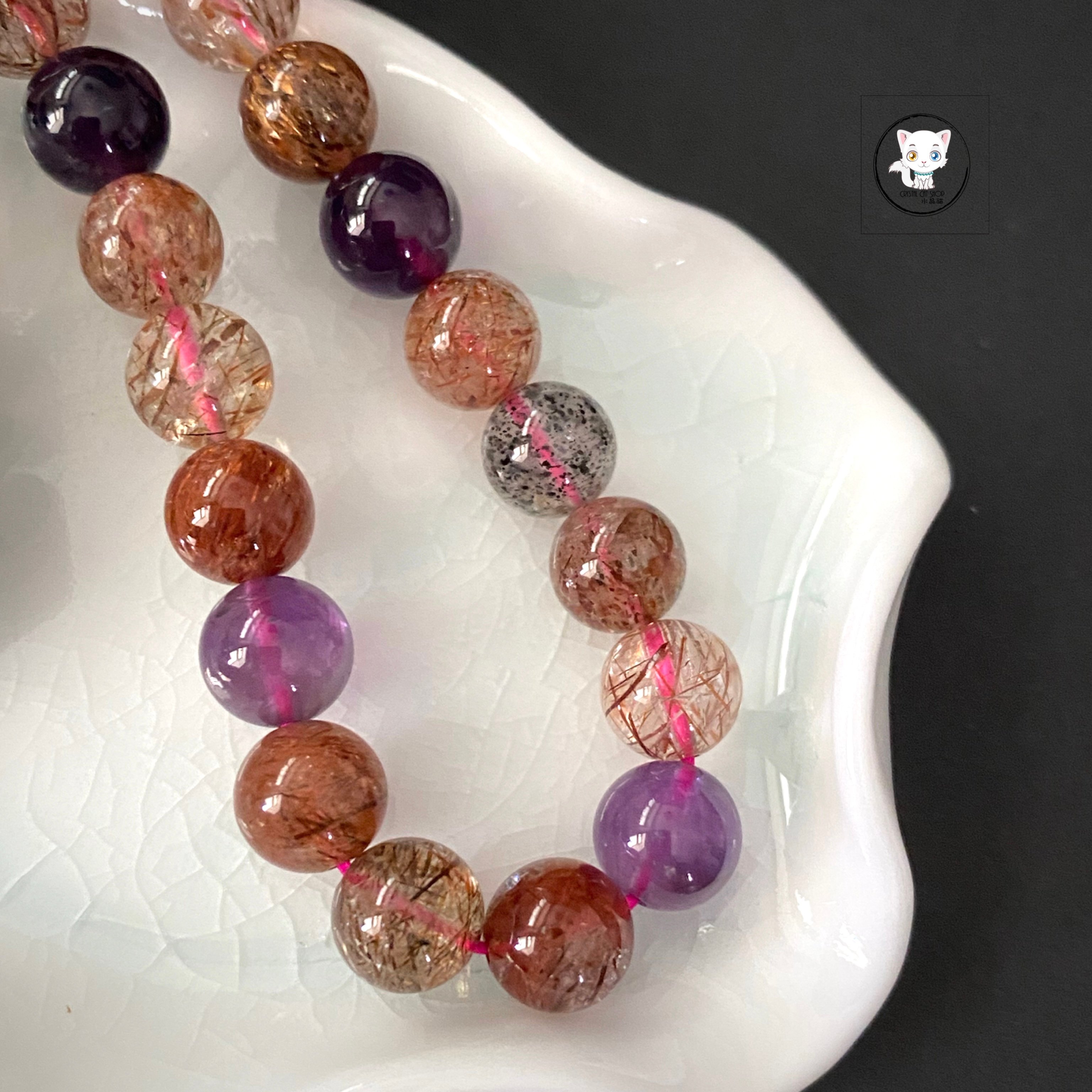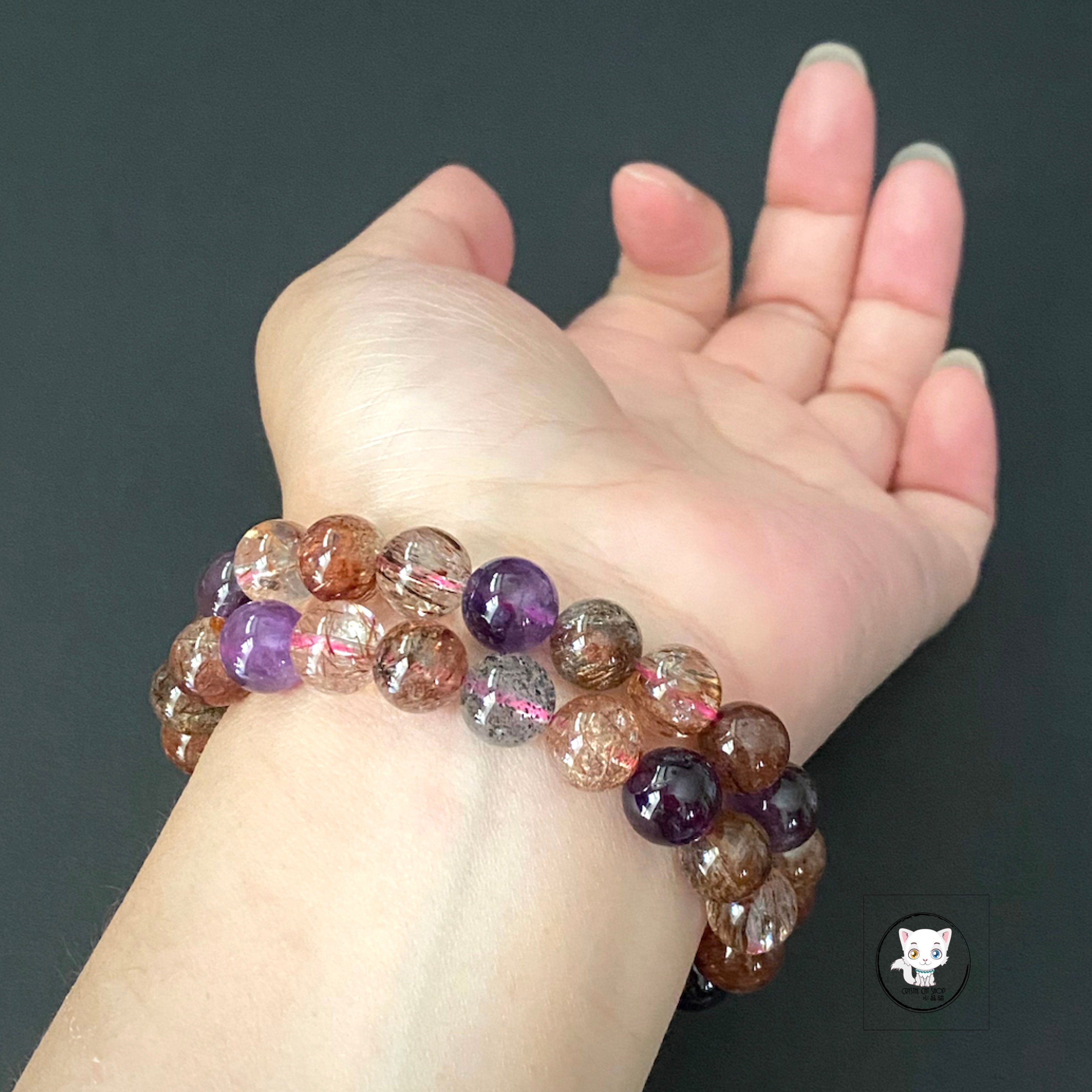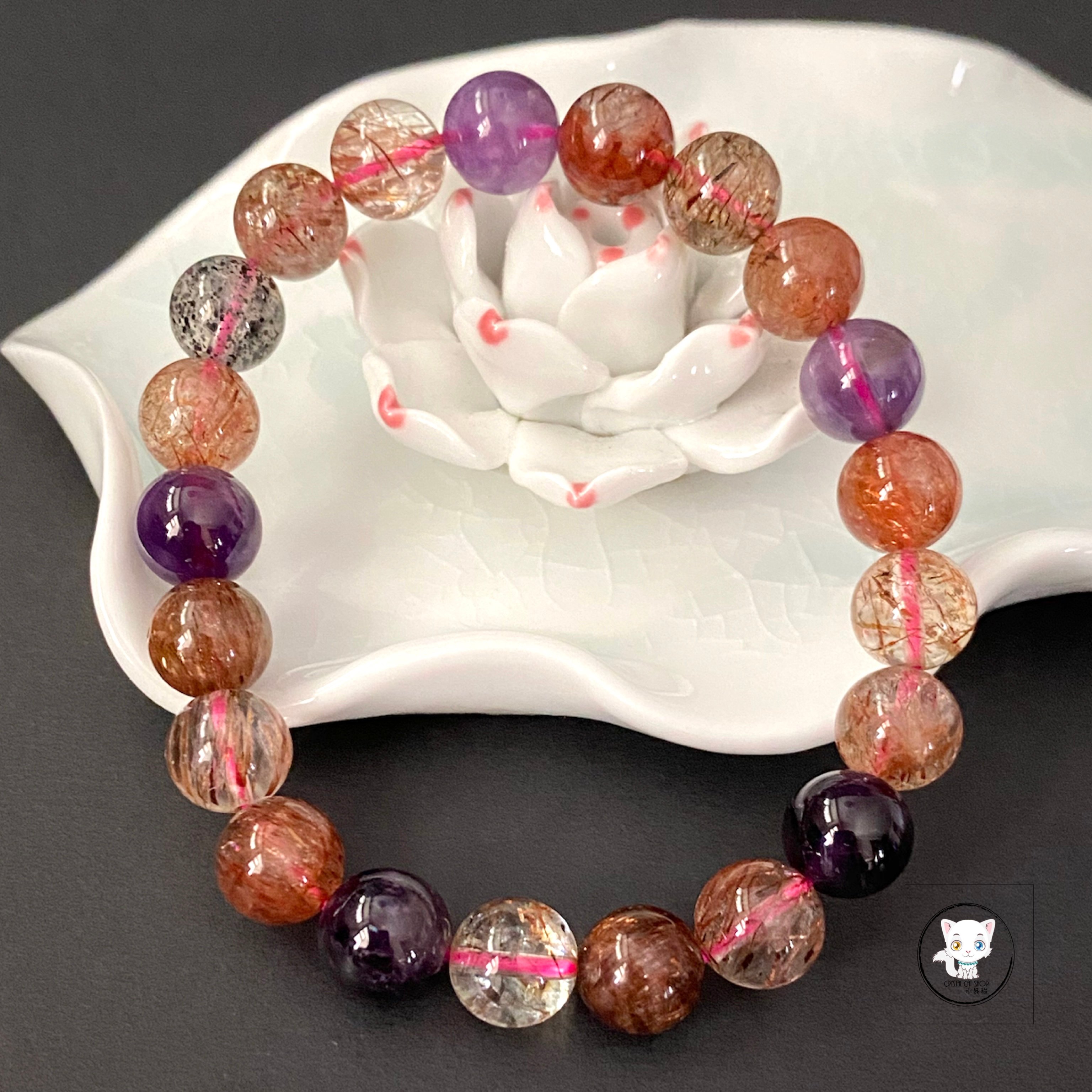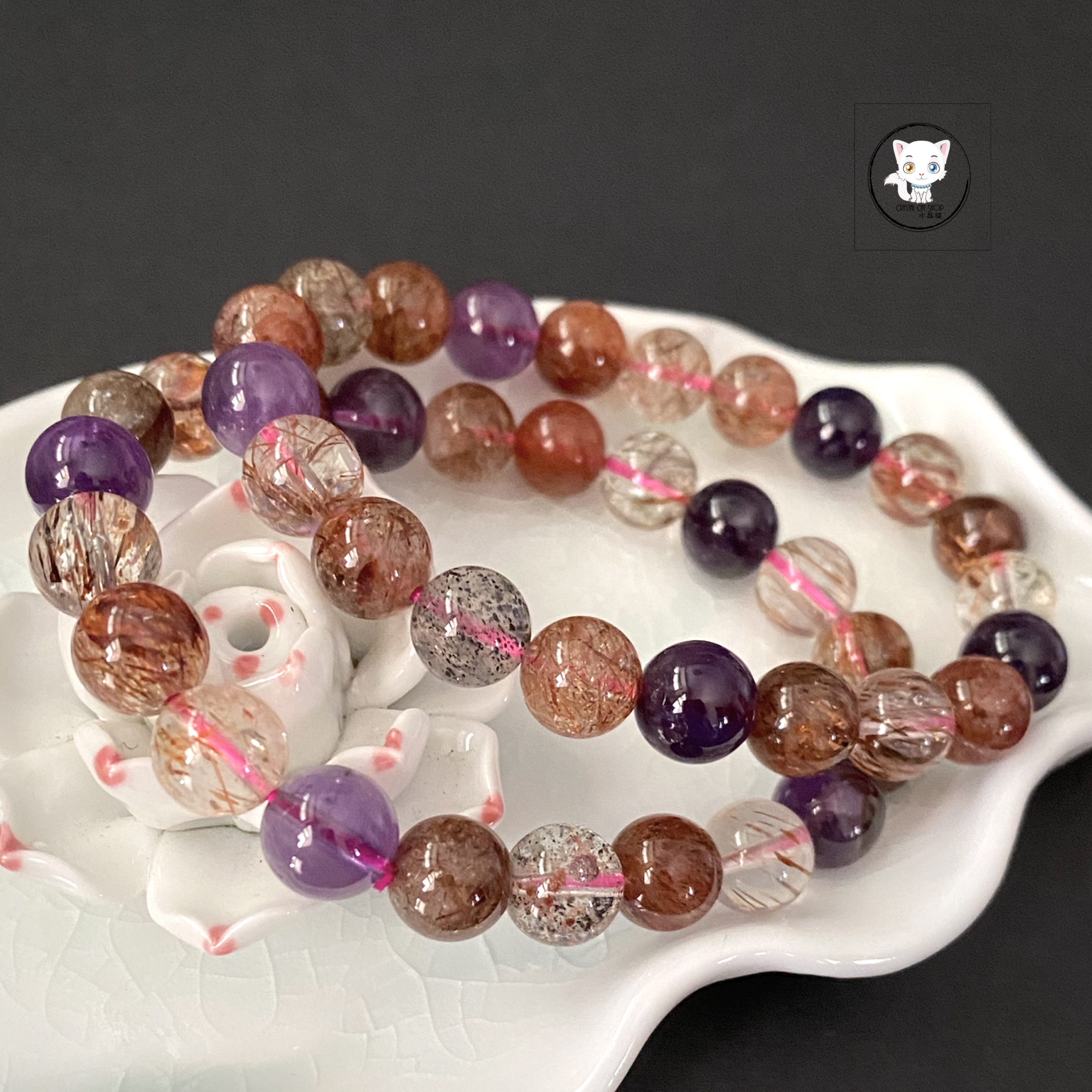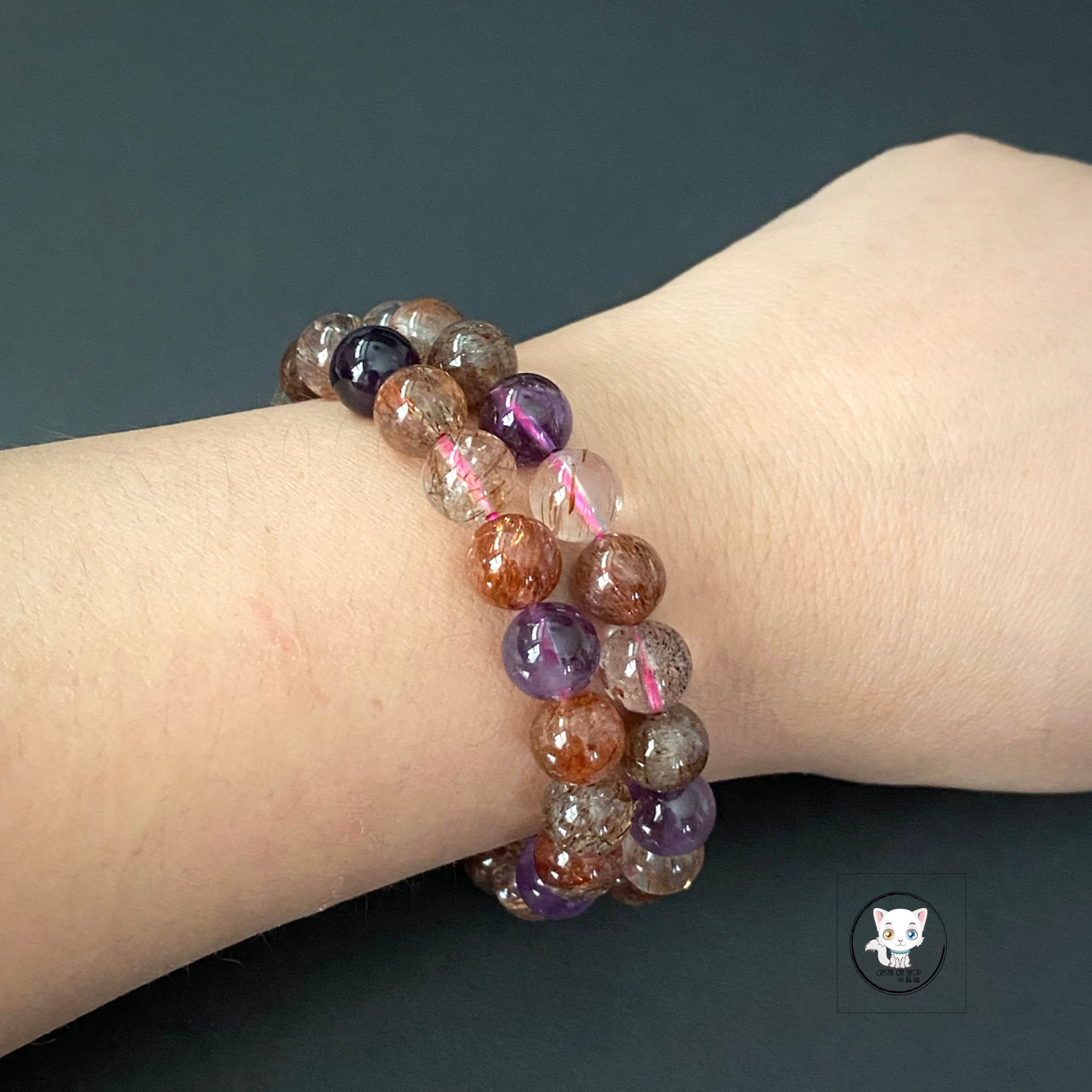 超級七/Super7手鏈 晶石尺寸:約9.5mm+- 適合手圍:約17cm 【超級七介紹】 💖 獨特之處 Super Seven 神奇地融合了七種礦石,能量強大且獨一無二。每塊晶石未必同時具備七種屬性,卻因此更顯珍貴。它無需淨化與啟動,自帶源源不絕的能量,是天然的能量寶庫! ✅ 核心功效 1. 全面平衡:打開、平衡與激發人體所有脈輪,涵蓋財富、愛情、人緣、貴人、靈性等多重功效。 2. 身心療癒:改善腸胃不適、消化問題,強化腎上腺與甲狀腺功能,淨化負面情緒,提升正面能量。 💟 七種共生礦精華 * 紫水晶:穩固愛情,啟發思考,緩解負能量 * 白水晶:促進溝通,增強人際,暢通能量 * 茶晶:提升專注,穩定心緒,接地能量 * 黃磷鐵礦:激發創意,培養積極,仁慈心態 * 金紅石:調節情緒,強化人際,正向能量 * 針鐵礦:高效溝通,集中精神,強化專注 * 纖鐵礦:穩定能量,清晰思路,增強記憶 🌈 Super Seven,一石多能,為您帶來全方位的能量守護! 🔮 功效非精密科學,僅供參考。 ❇️ 質素如一,隨機發貨 ❇️ 📍天然水晶均有天然紋路,冰裂,棉絮或少許礦缺,如介意者,請注意。 ⚠️ 敬請留意 : 照片因拍攝光線或電腦螢幕設定不同,晶石顏色與實物可能會有輕微色差,顏色以實物為準。