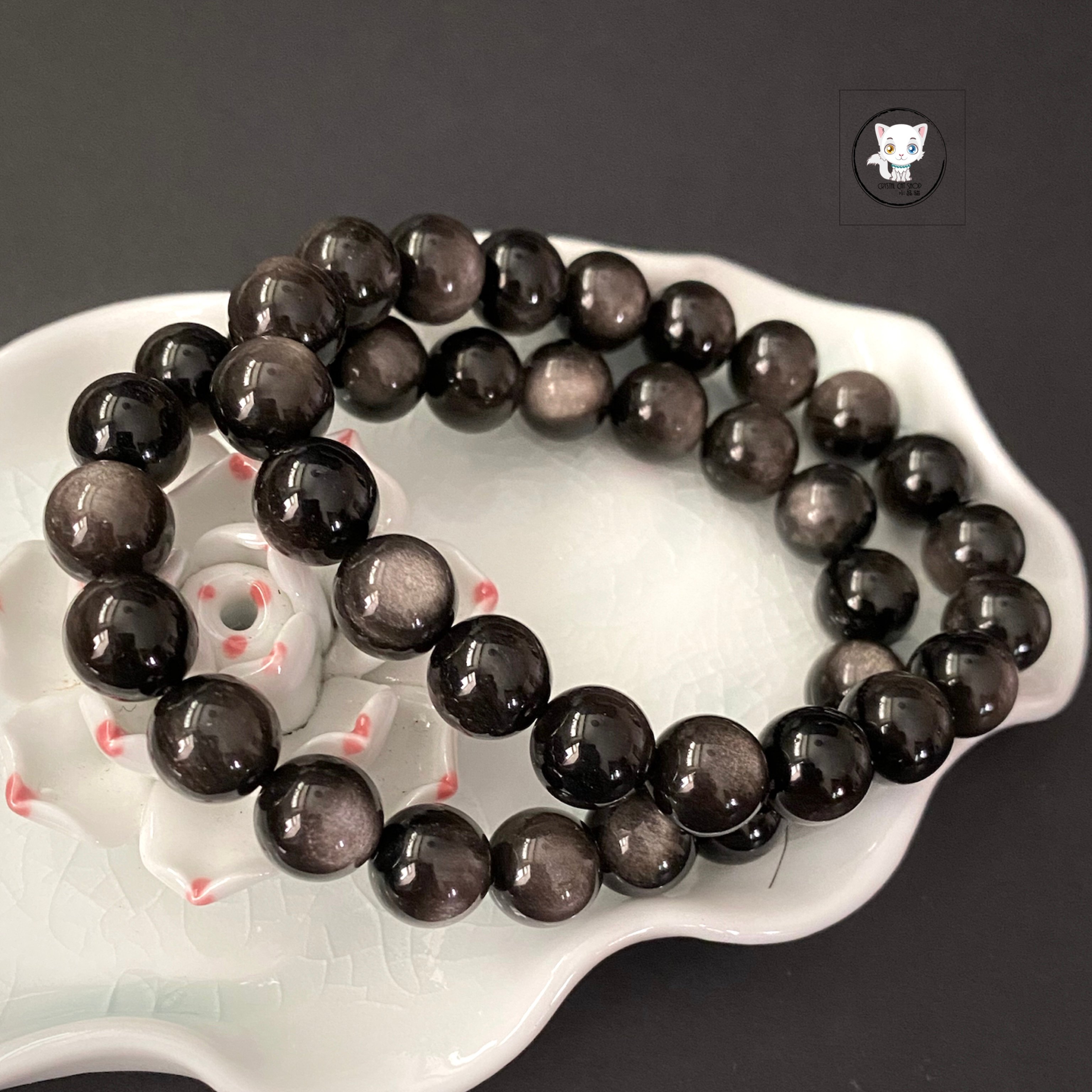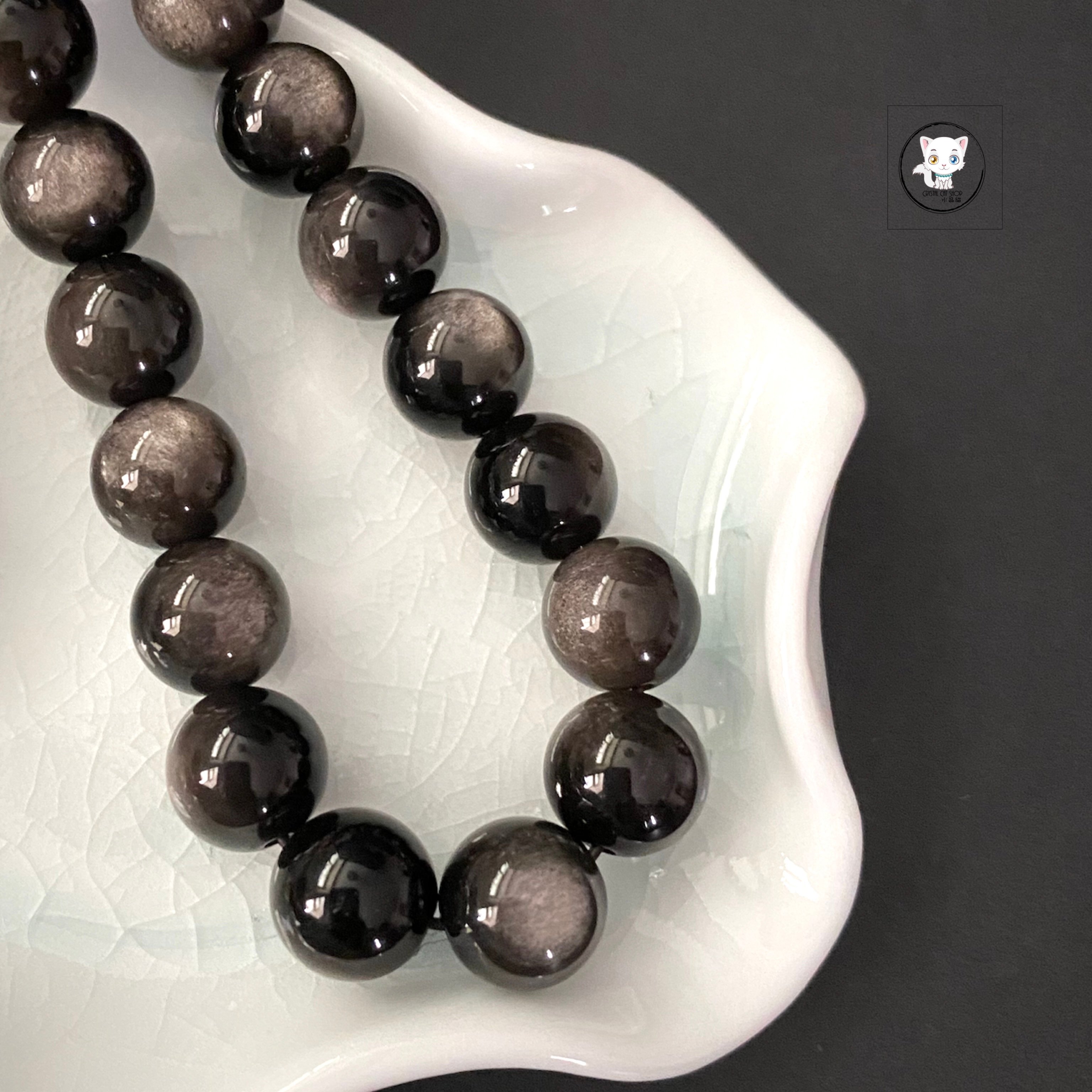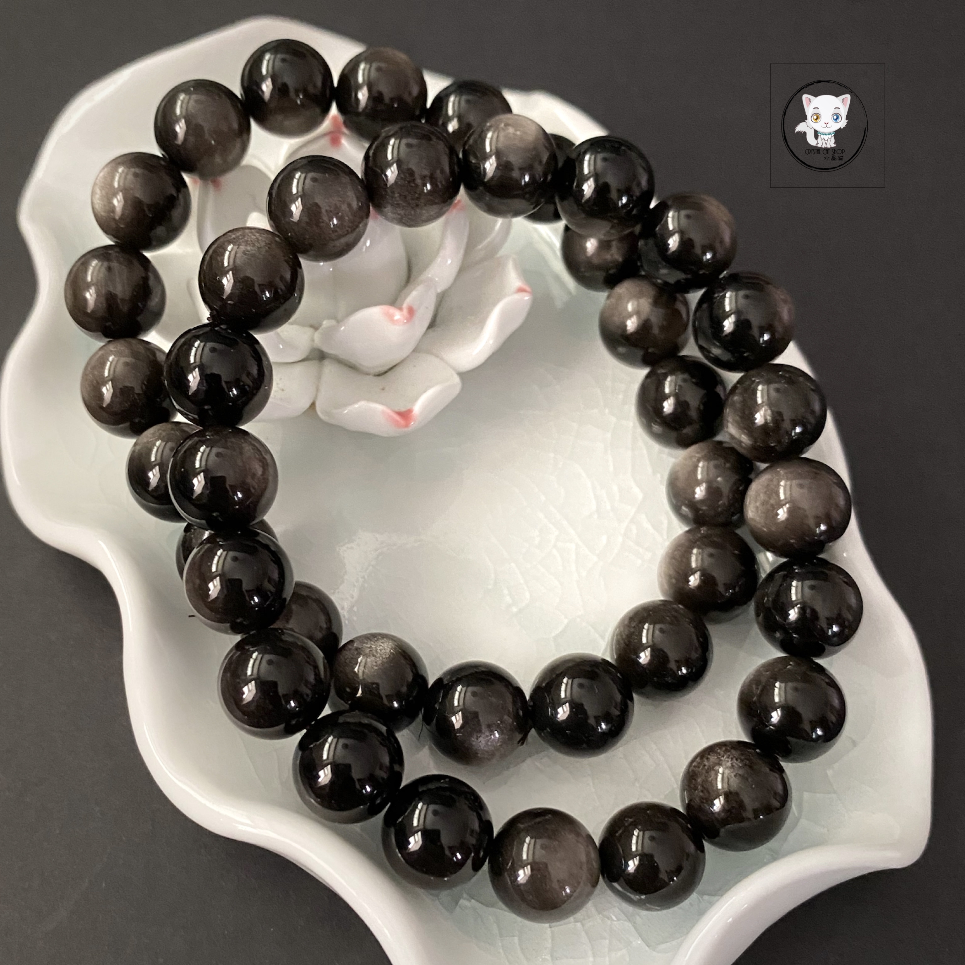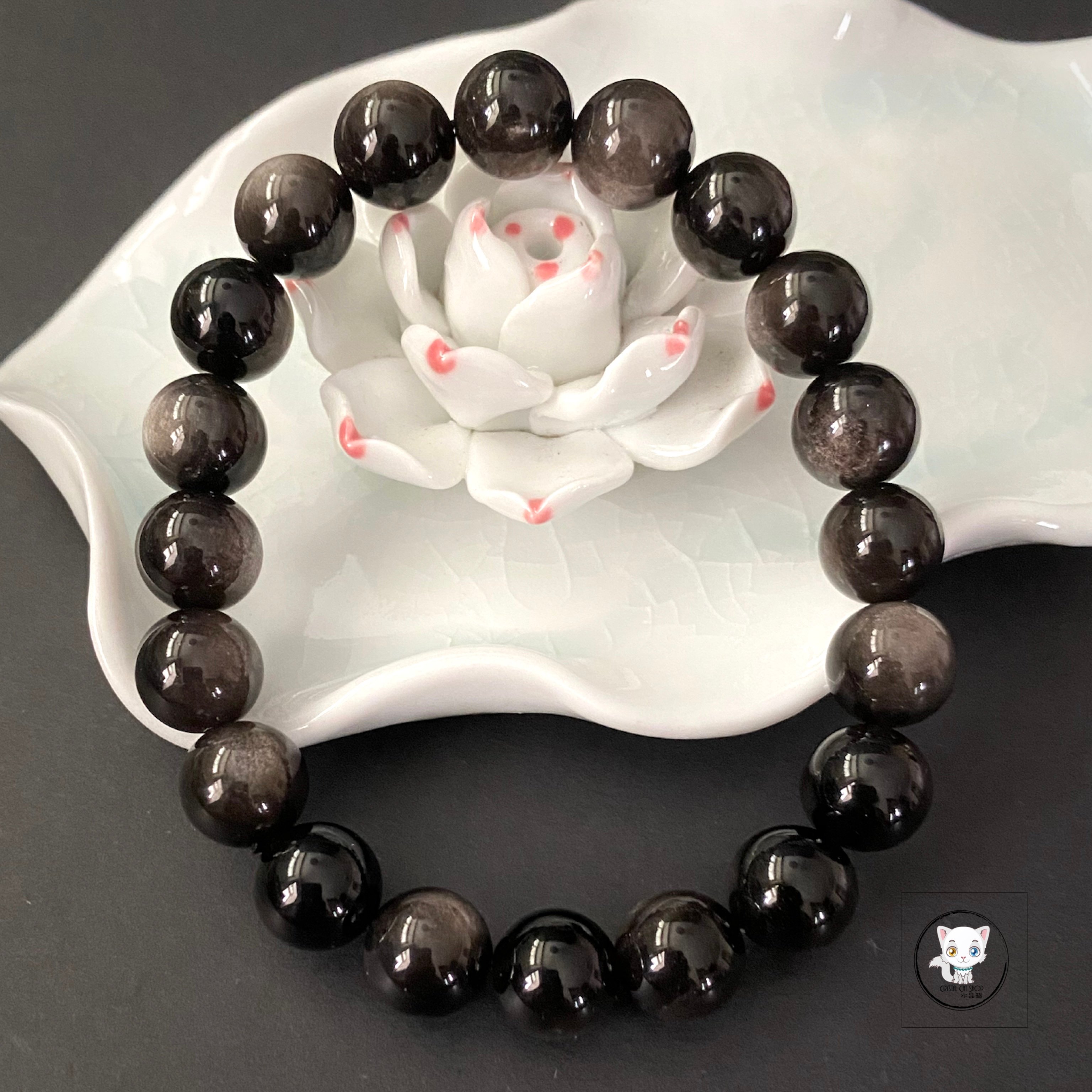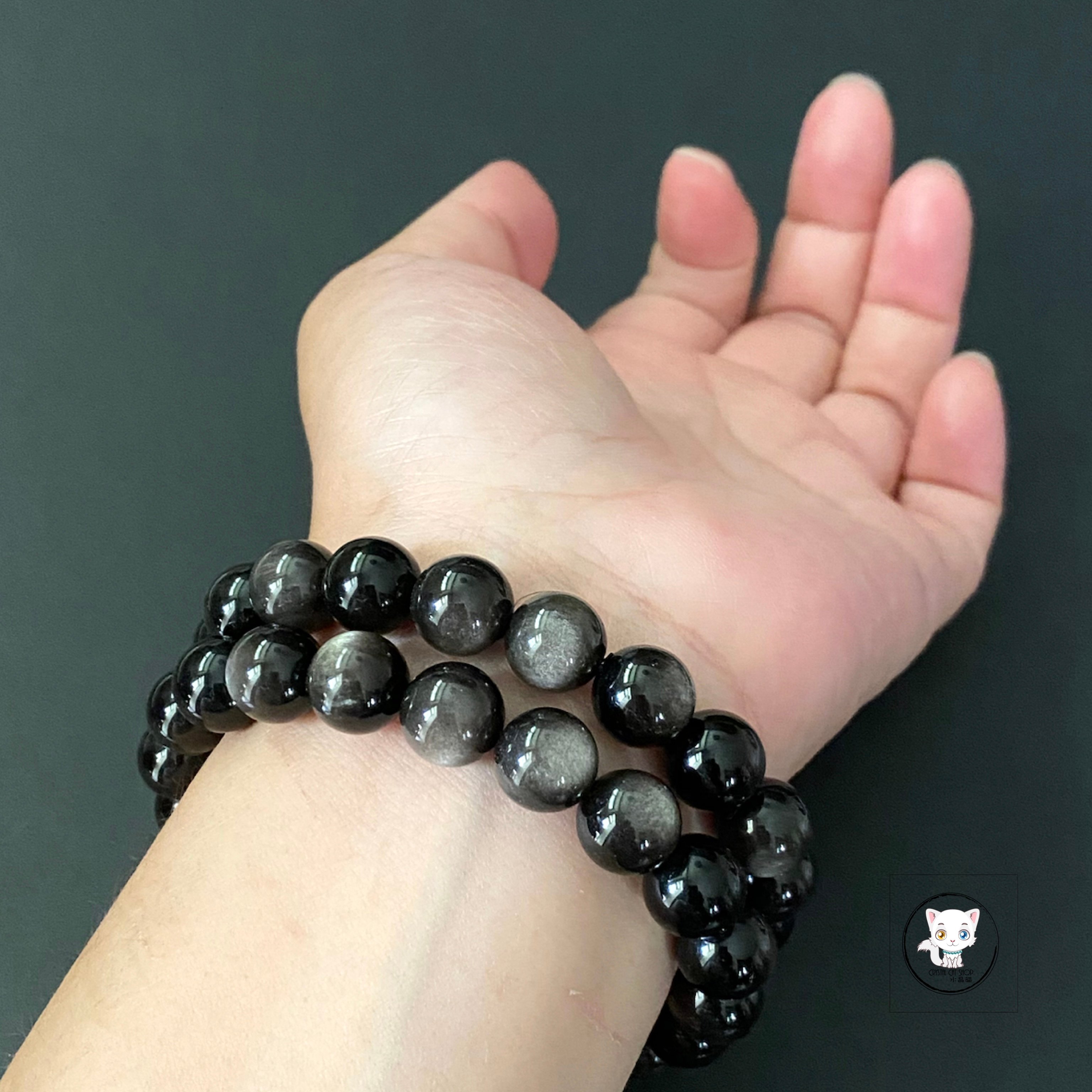 雙眼天然銀曜石手鏈 晶石尺寸:約10mm 適合手圍:約18cm 【銀曜石介紹】 💖 銀曜石(又稱銀沙黑曜石、銀閃曜石)是黑曜石家族中的稀有品種,由火山熔岩迅速冷卻形成。它含有銀礦石成分,在光線照射下會呈現美麗的銀沙「眼睛」。 ✅ 銀曜石具有多重功效,可以防止靈異干擾和不良能量,是護身符和幸運符。它增強信念、自信和果斷力,對於強化個性、通脈和辟邪有顯著效果。同時,銀曜石能提升生命力,恢復精神和體力,對工作人士和創意工作者平衡生活有幫助,還能改善睡眠,對於戒除不良習慣有益。作為招財水晶,銀曜石能消除負能量,帶來財富。 💟 總而言之,銀曜石集辟邪、鎮宅和招財於一身,散發著青春的迷人魅力! 🔮 功效非精密科學,僅供參考。 ❇️ 質素如一,隨機發貨 ❇️ 📍天然水晶均有天然紋路,冰裂,棉絮或少許礦缺,如介意者,請注意。 ⚠️ 敬請留意 : 照片因拍攝光線或電腦螢幕設定不同,晶石顏色與實物可能會有輕微色差,顏色以實物為準。